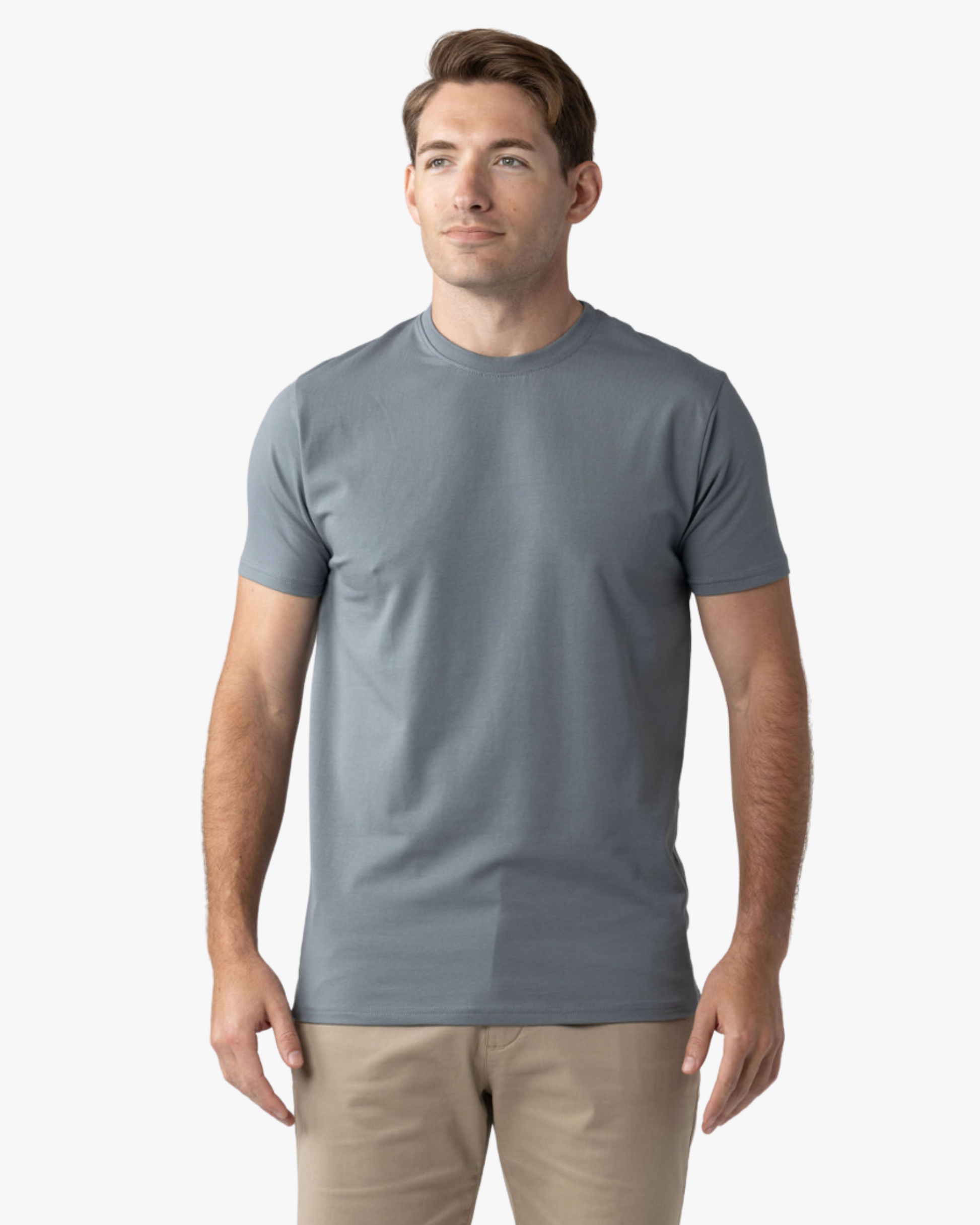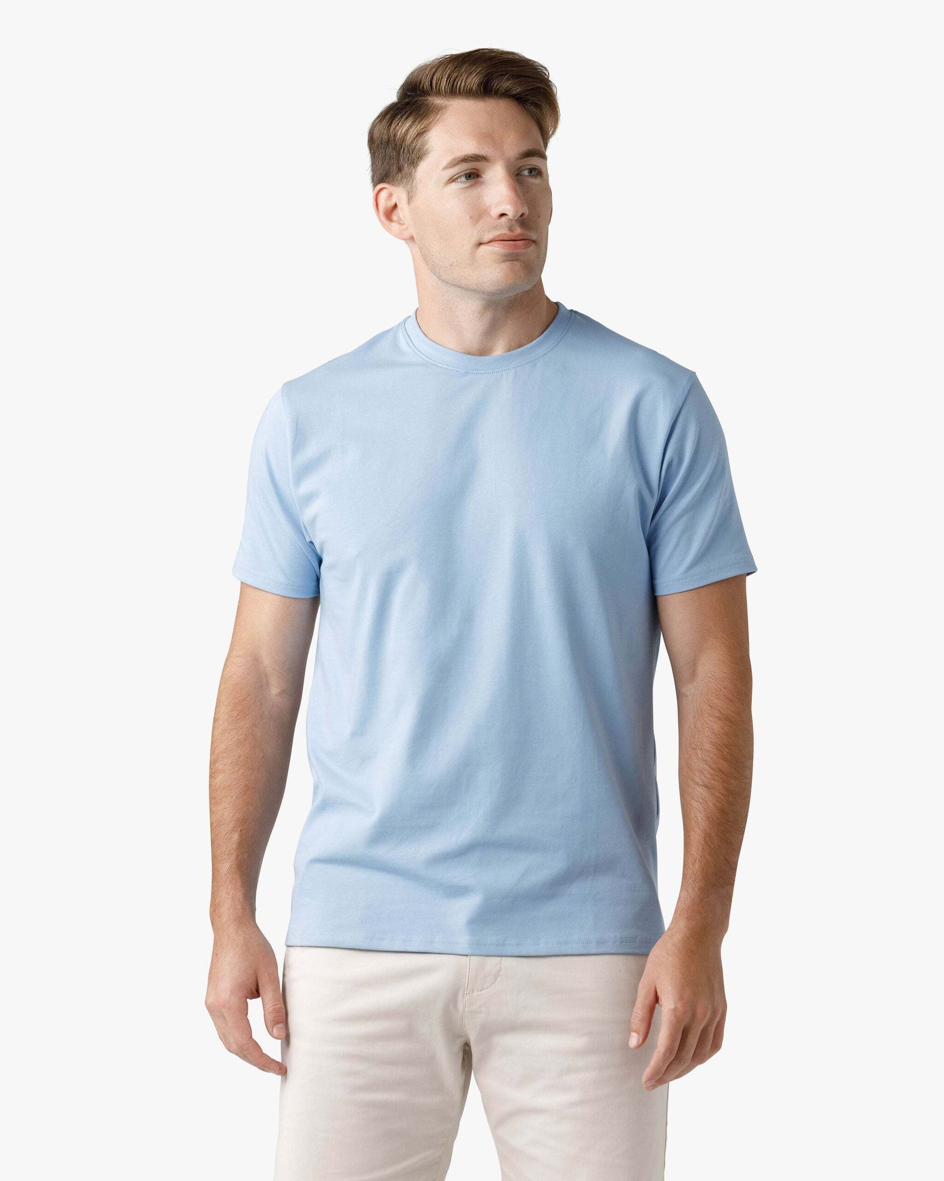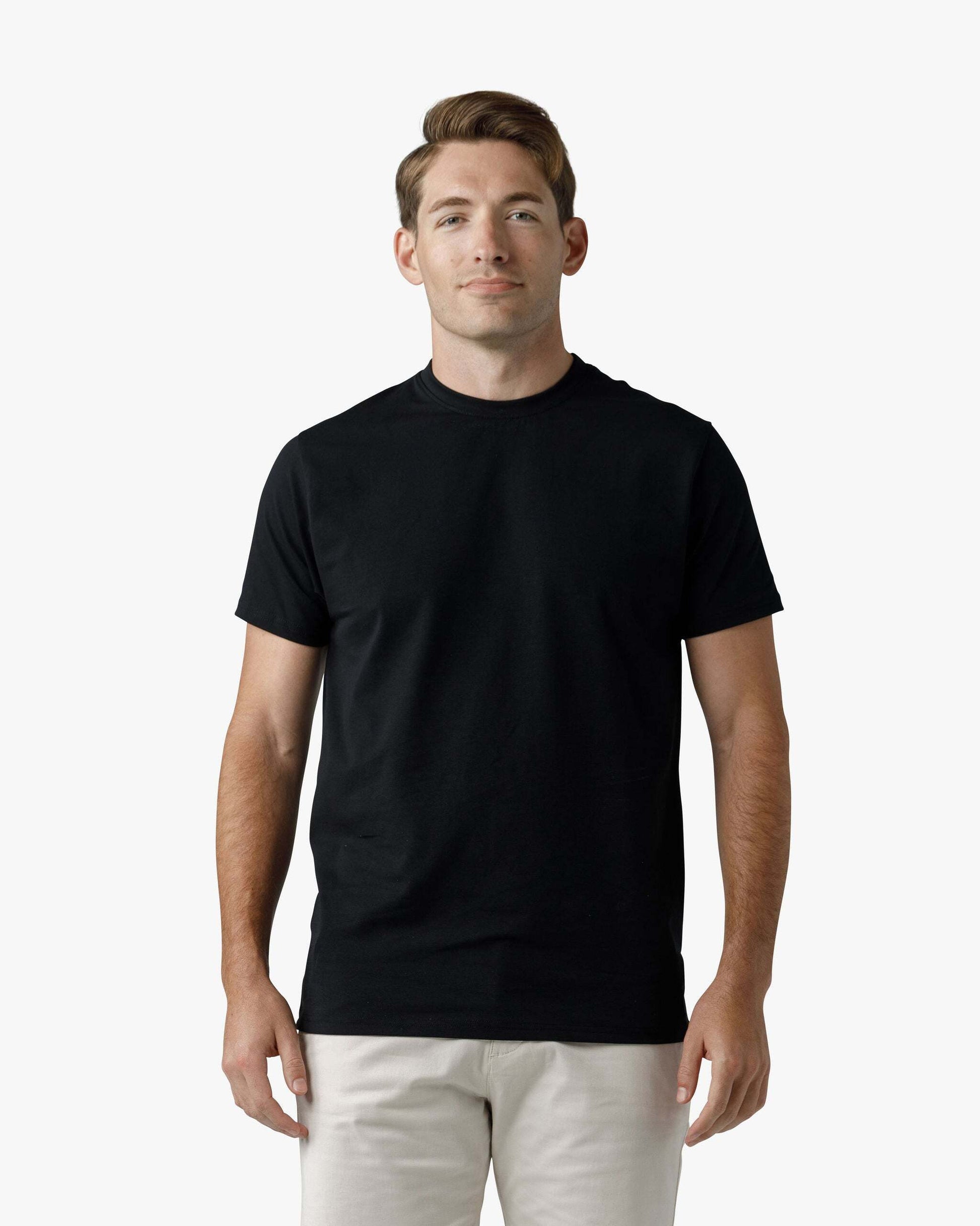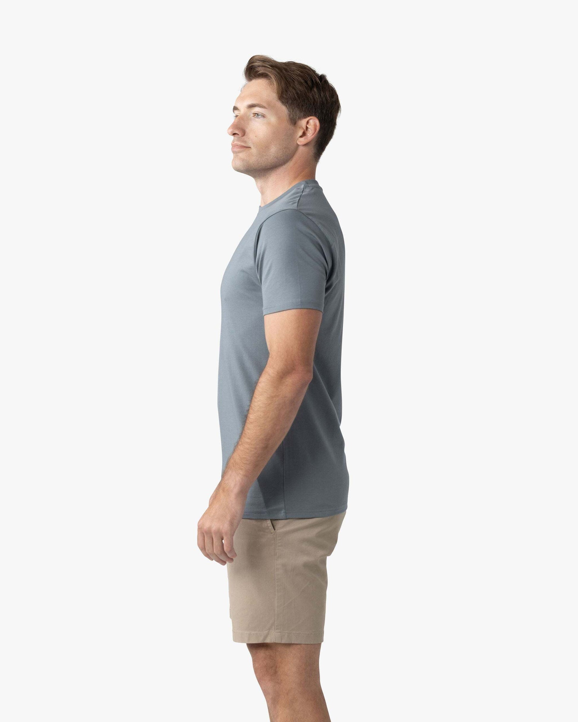 The Signature Classic Tee is a timeless t-shirt perfected with our proprietary fabric! Featuring a bold ribbed collar, perfectly fitted arms, chest, and shoulders, with just the right amount of room at the waist for all-day comfort. Finished with a classic straight bottom hem, it’s your go-to for effortless, everyday style.