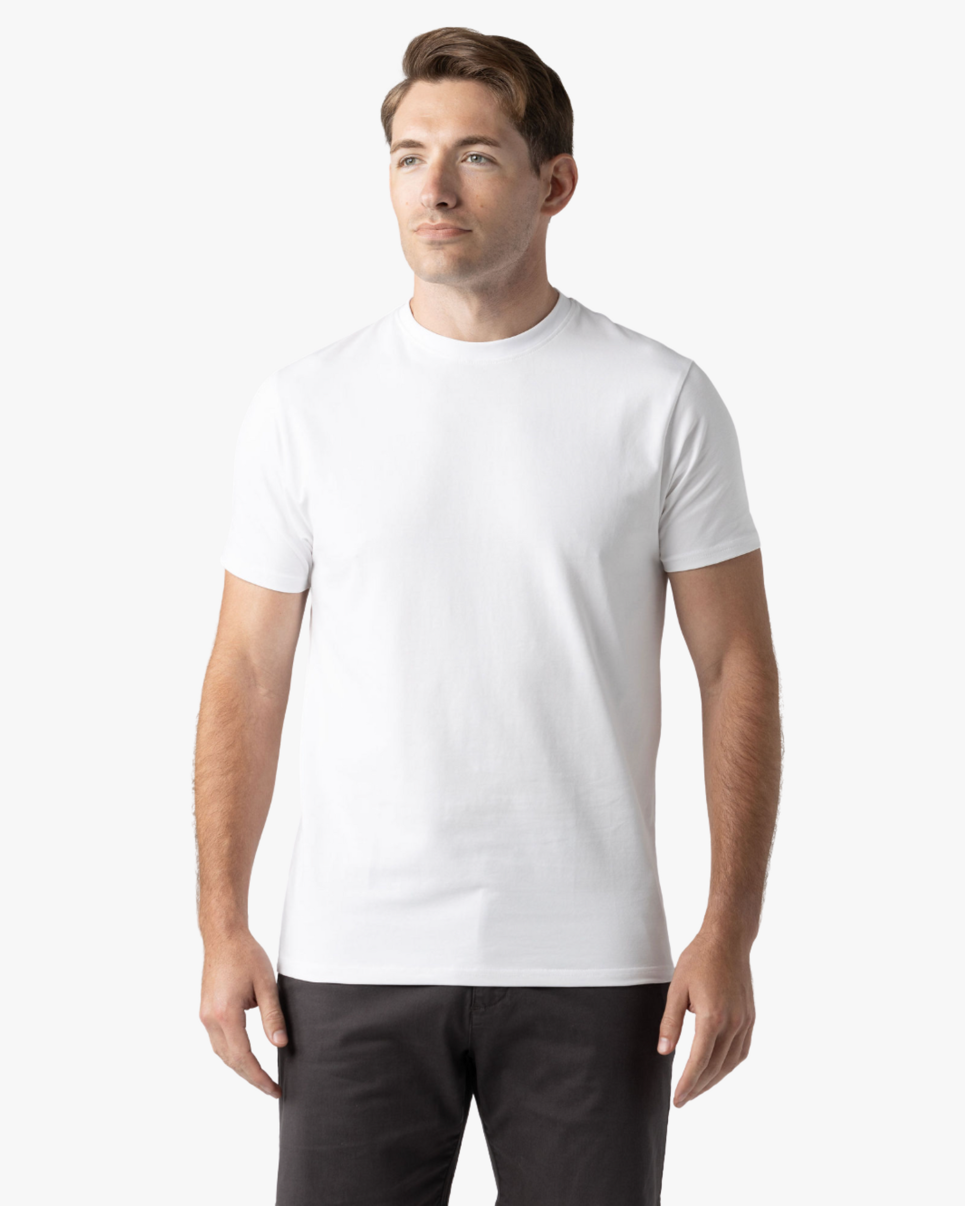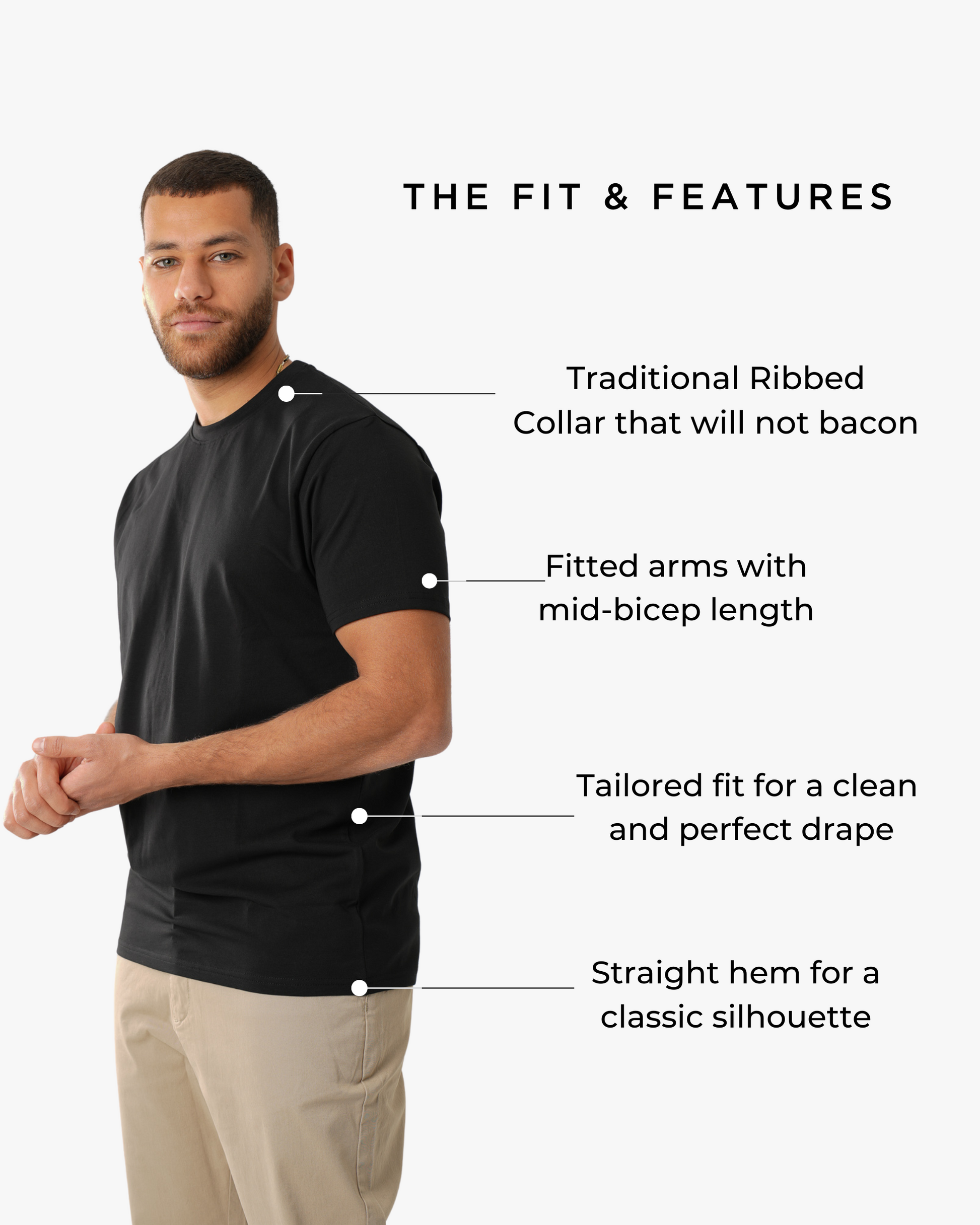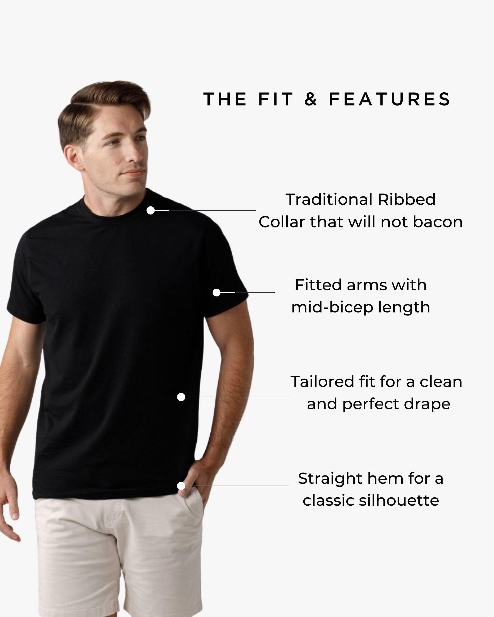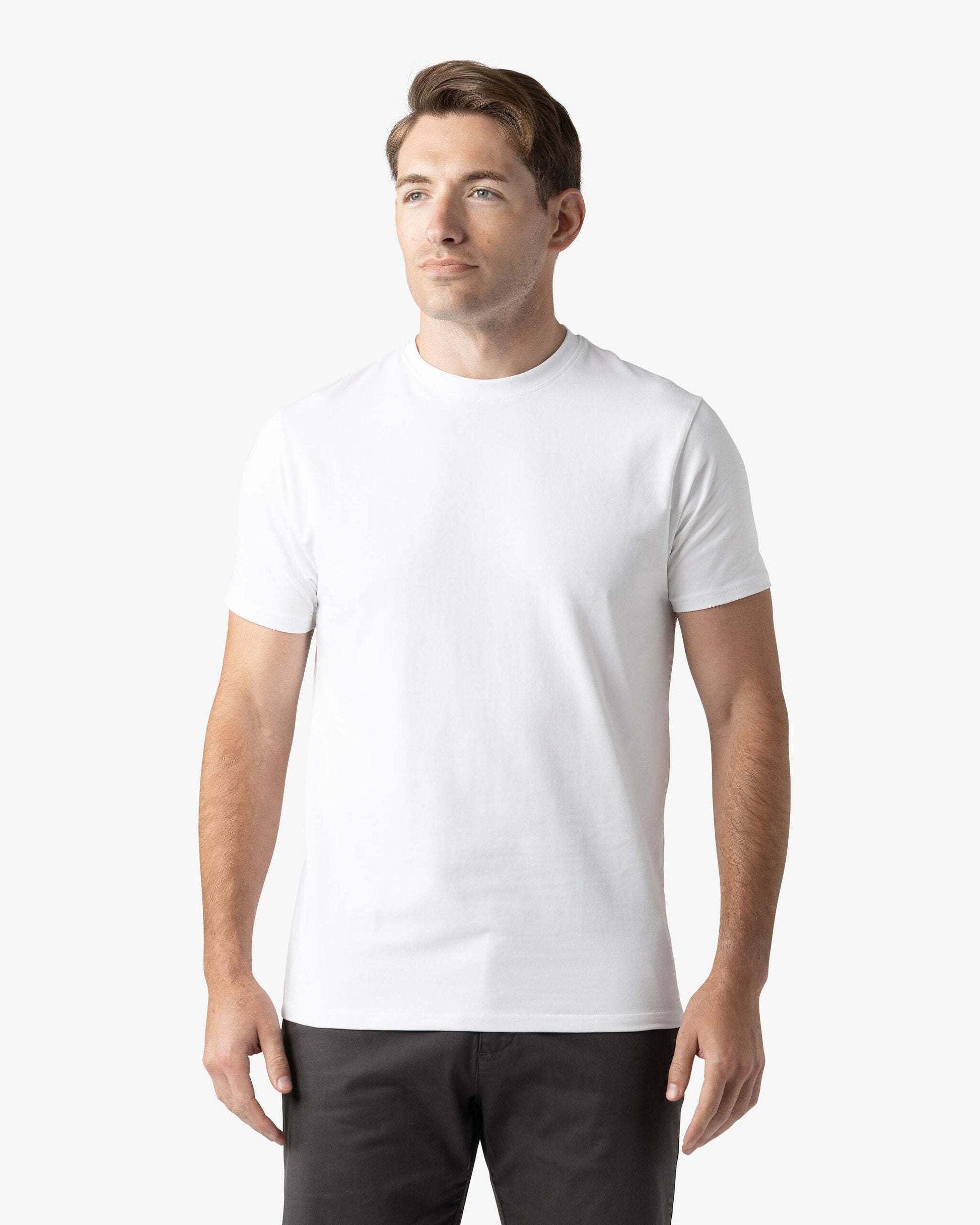 The Signature Classic Tee is a timeless t-shirt perfected with our proprietary fabric! Featuring a bold ribbed collar, perfectly fitted arms, chest, and shoulders, with just the right amount of room at the waist for all-day comfort. Finished with a classic straight bottom hem, it’s your go-to for effortless, everyday style.