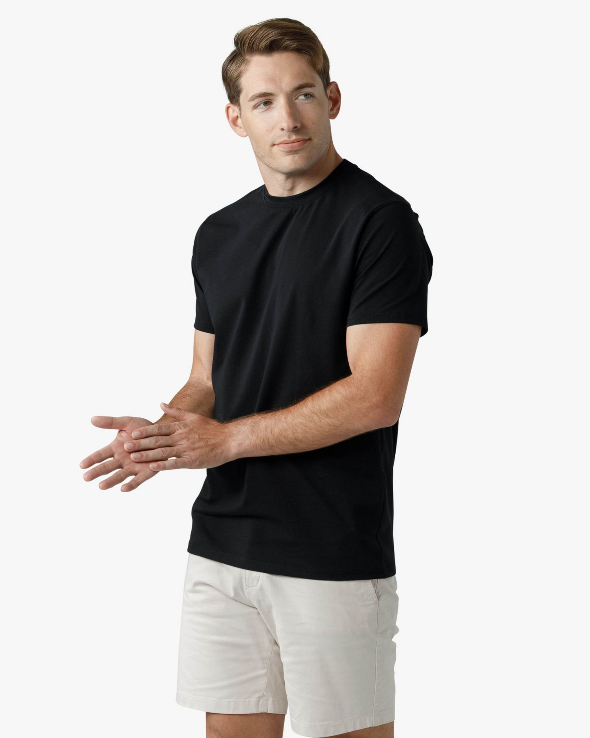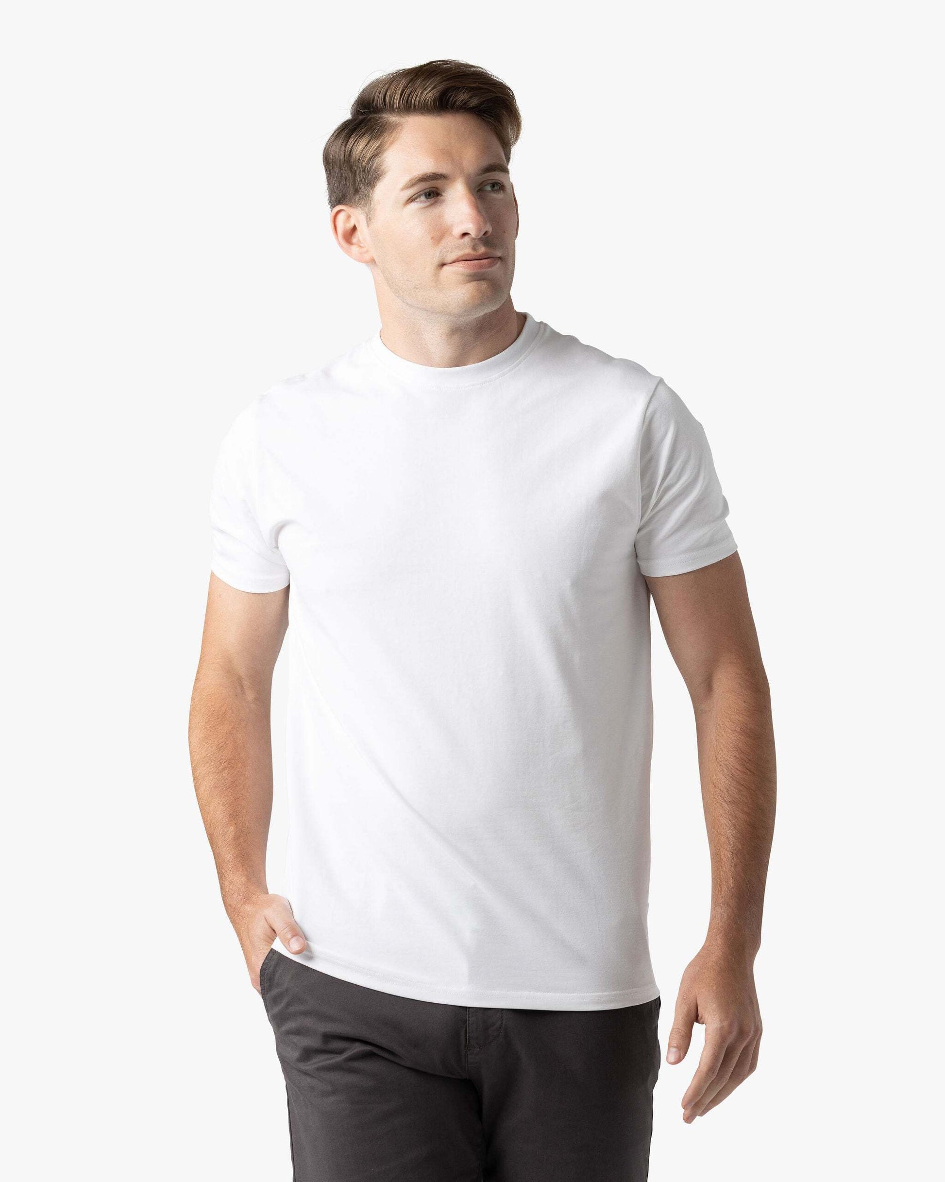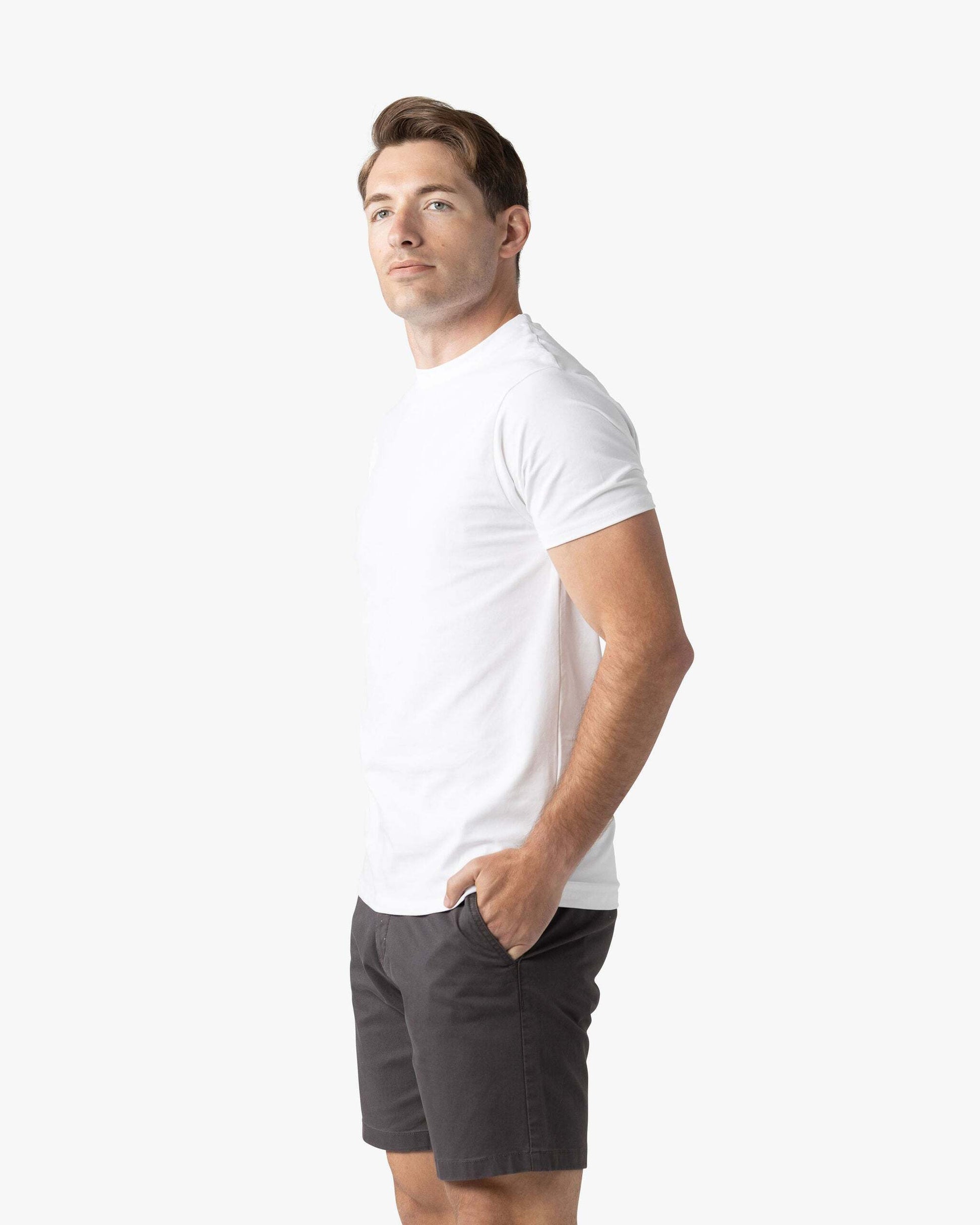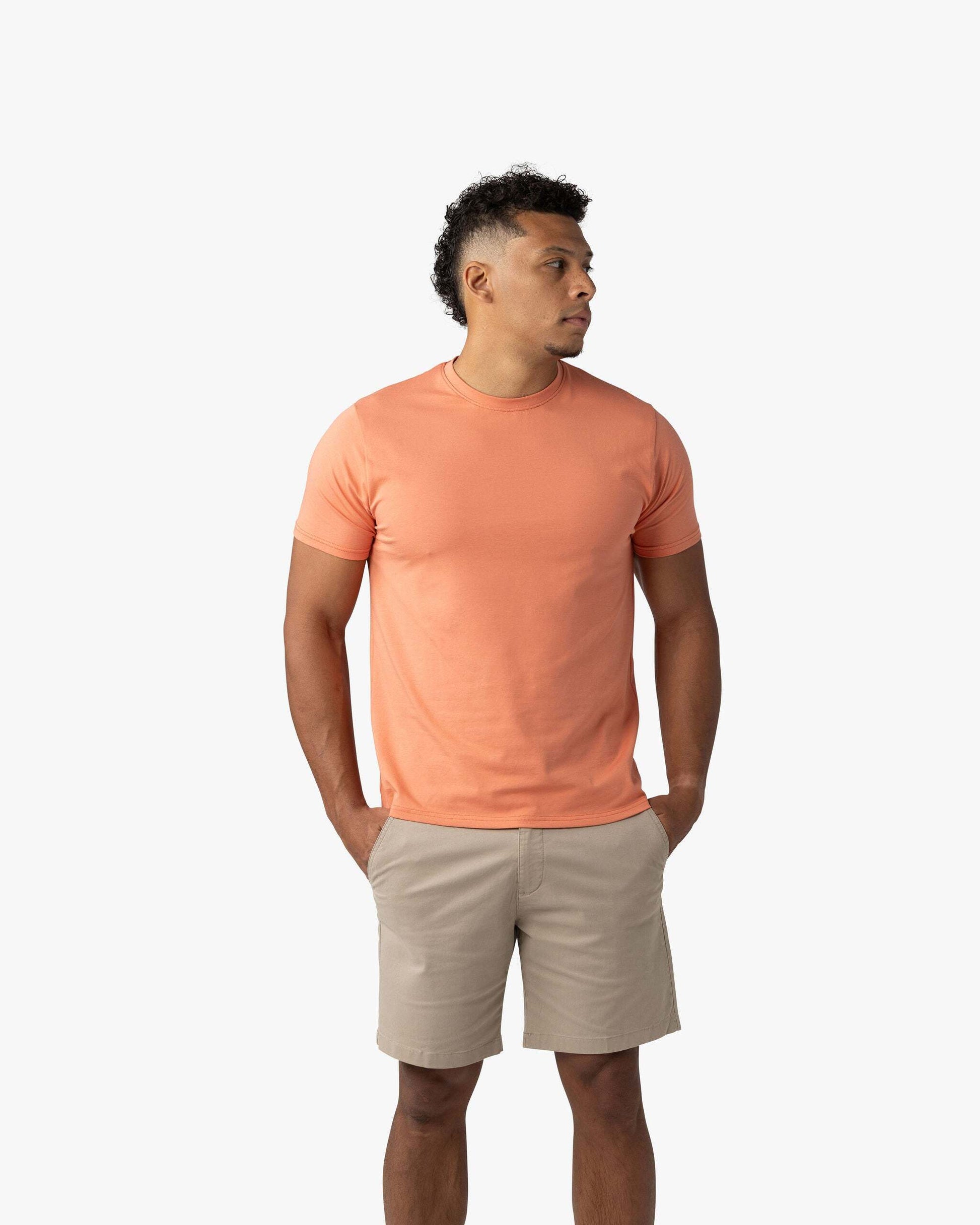 The Signature Classic Tee is a timeless t-shirt perfected with our proprietary fabric! Featuring a bold ribbed collar, perfectly fitted arms, chest, and shoulders, with just the right amount of room at the waist for all-day comfort. Finished with a classic straight bottom hem, it’s your go-to for effortless, everyday style.