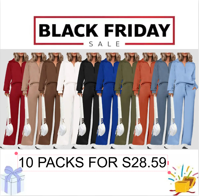 A half-zip sweatshirt and a pair of wide-leg trousers in a modern and practical design. The wide-leg trousers are designed with a drawstring and have a loose fit that suits all body shapes, creating a flowing and fluid effect. The half-zip design of the sweatshirt not only makes it easy to put on and take off, but also allows you to adjust the neckline according to your personal needs for added comfort.