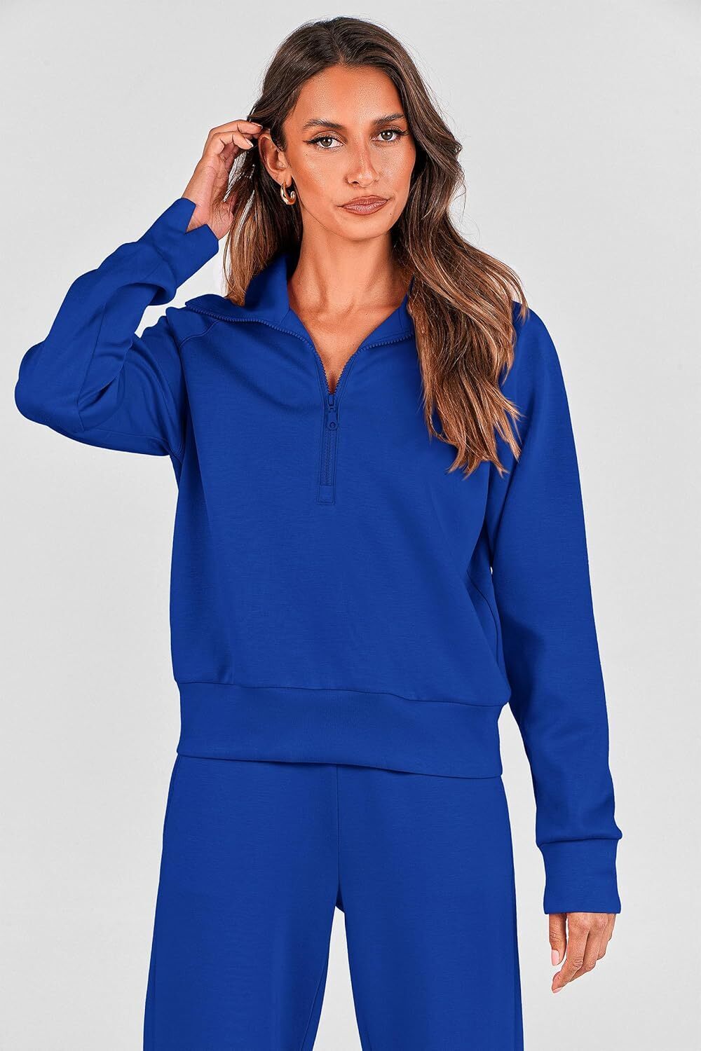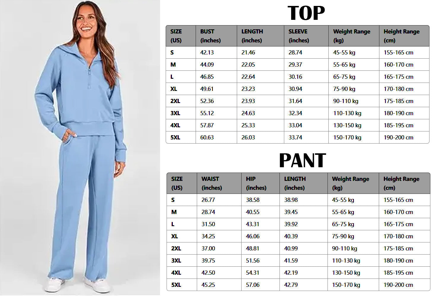 Women's 2 Piece Outfits Casual Lapel Half Zip Sweatshirts And Wide Leg Pants Tracksuit Sets