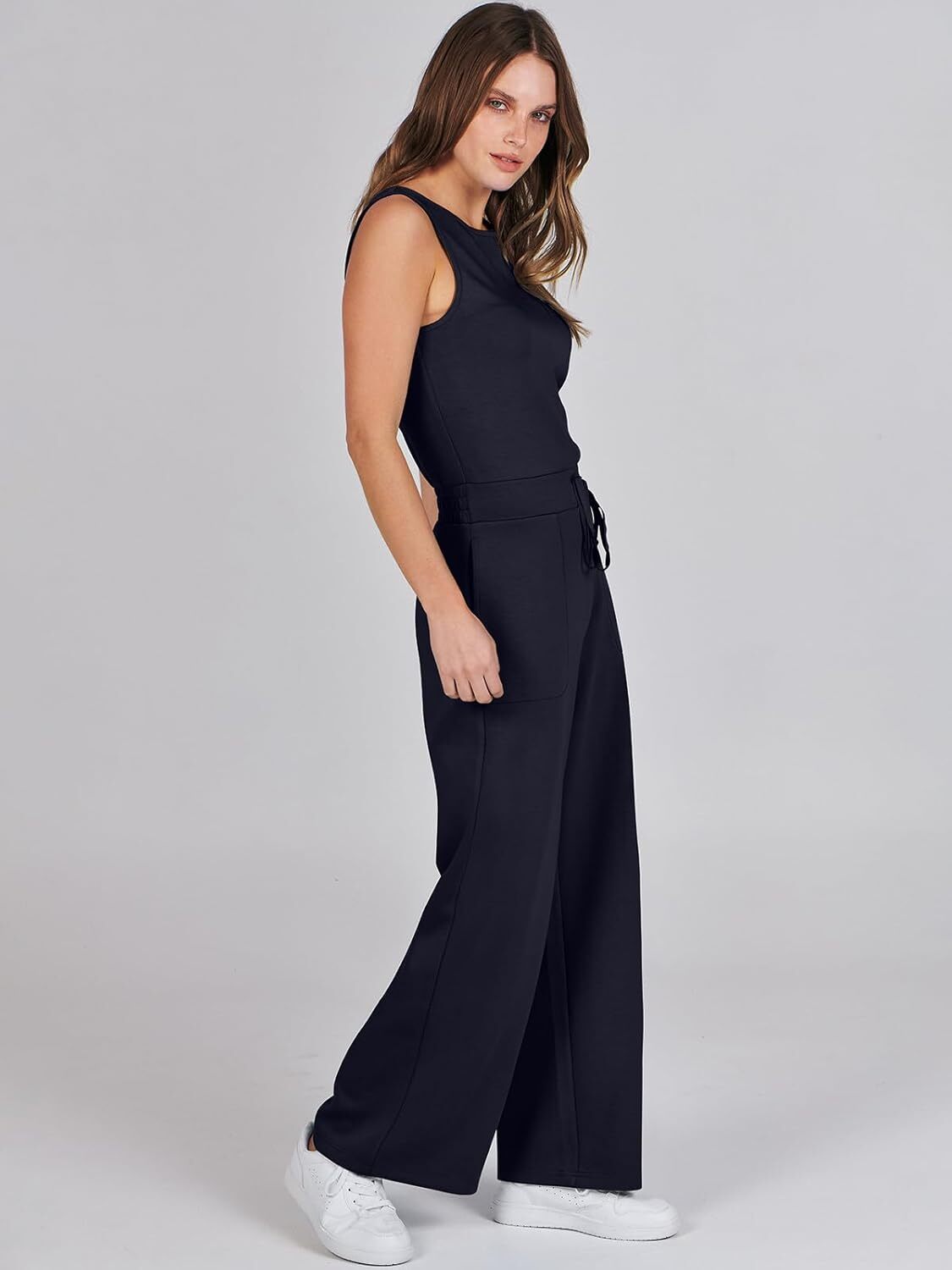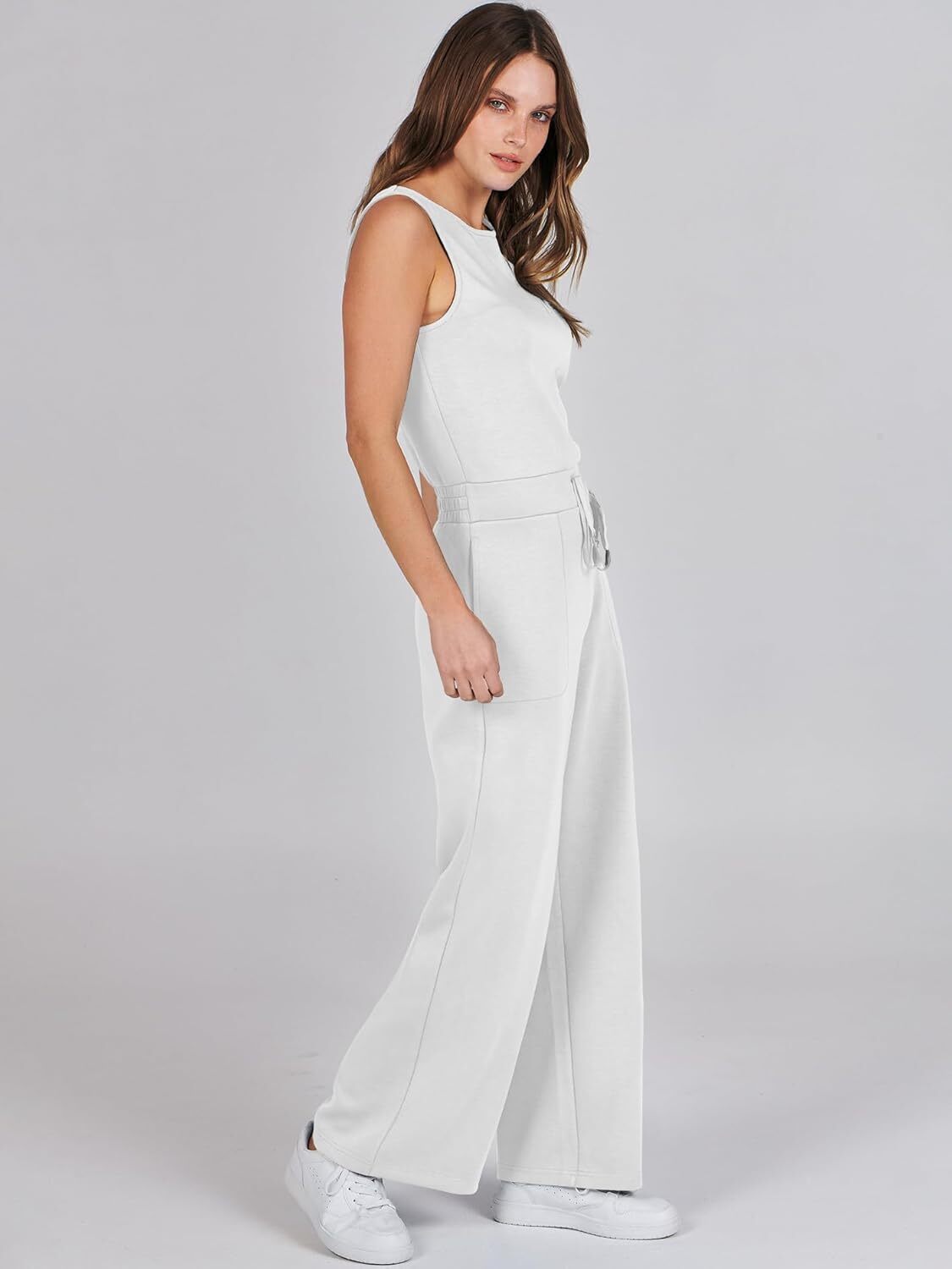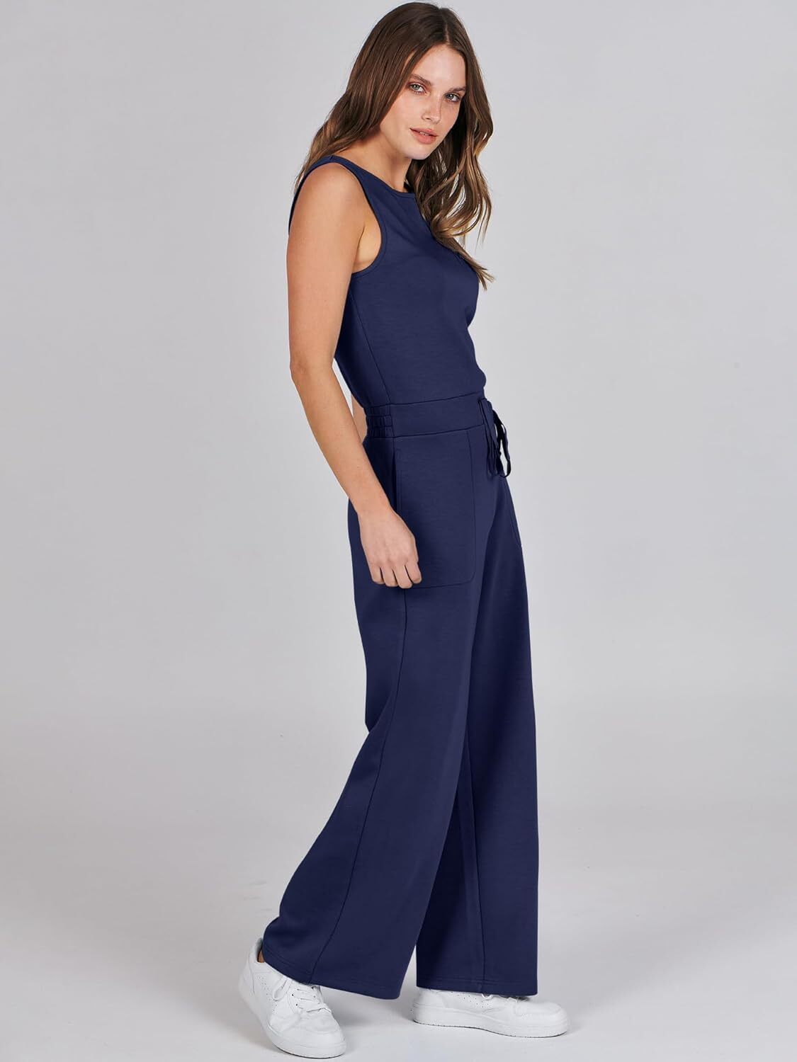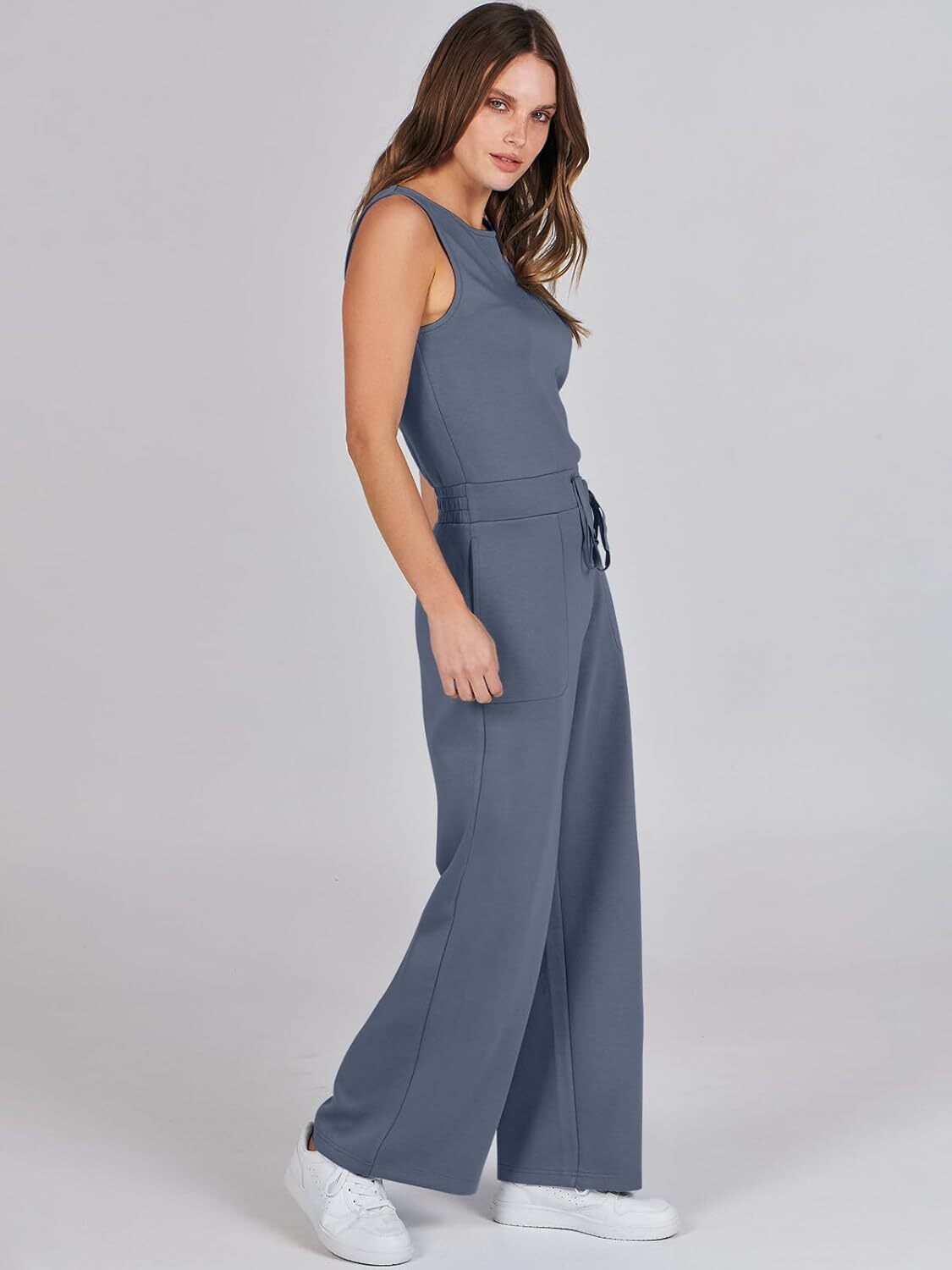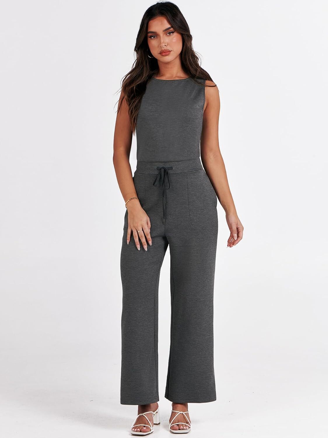 Womens Jumpsuits 2025 Casual Summer Dressy Romper Sleeveless Wide Leg Long Pants Outfits Fashion Travel Clothes