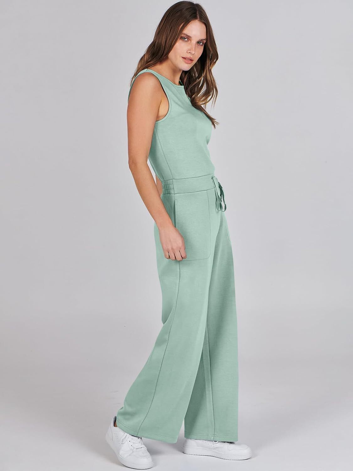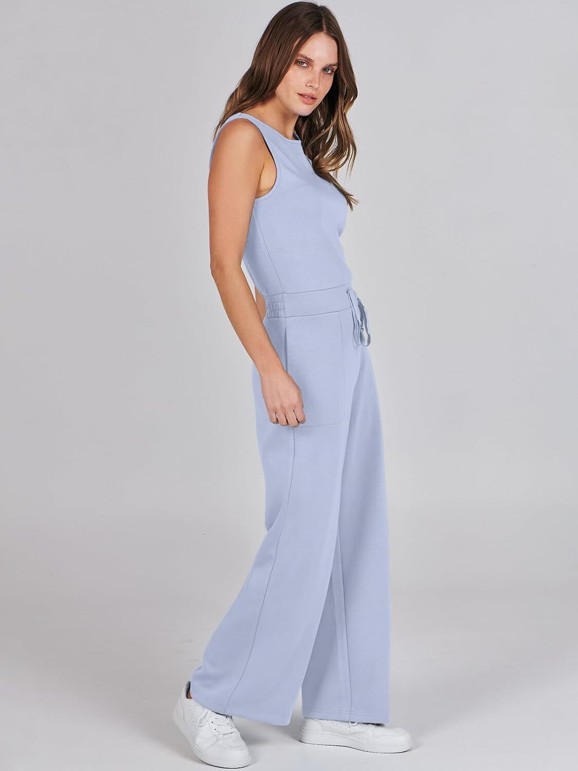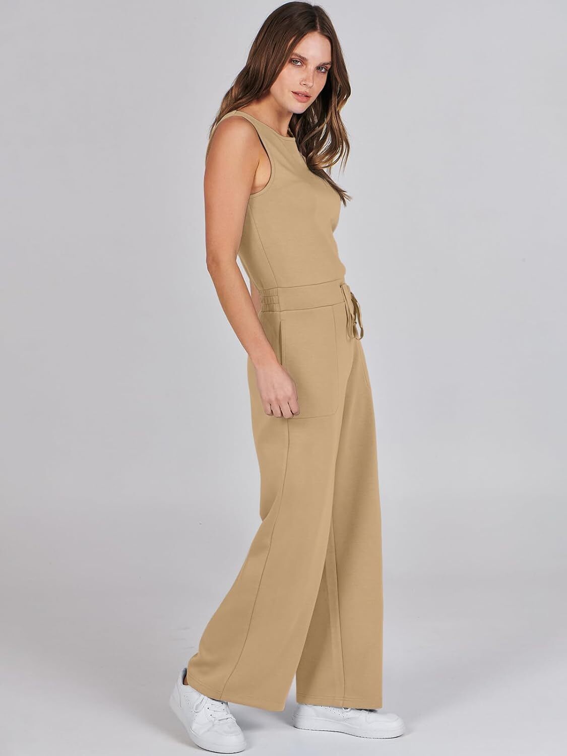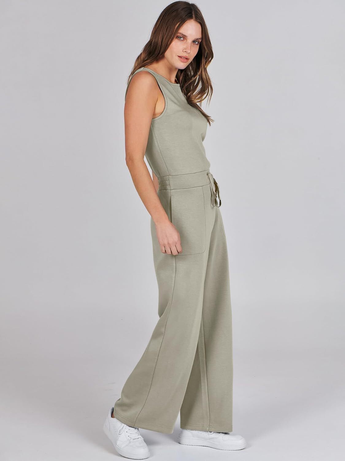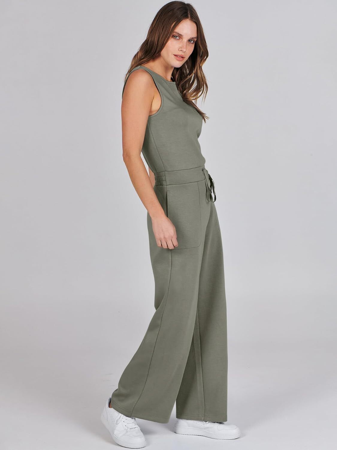 Womens Jumpsuits 2025 Casual Summer Dressy Romper Sleeveless Wide Leg Long Pants Outfits Fashion Travel Clothes
