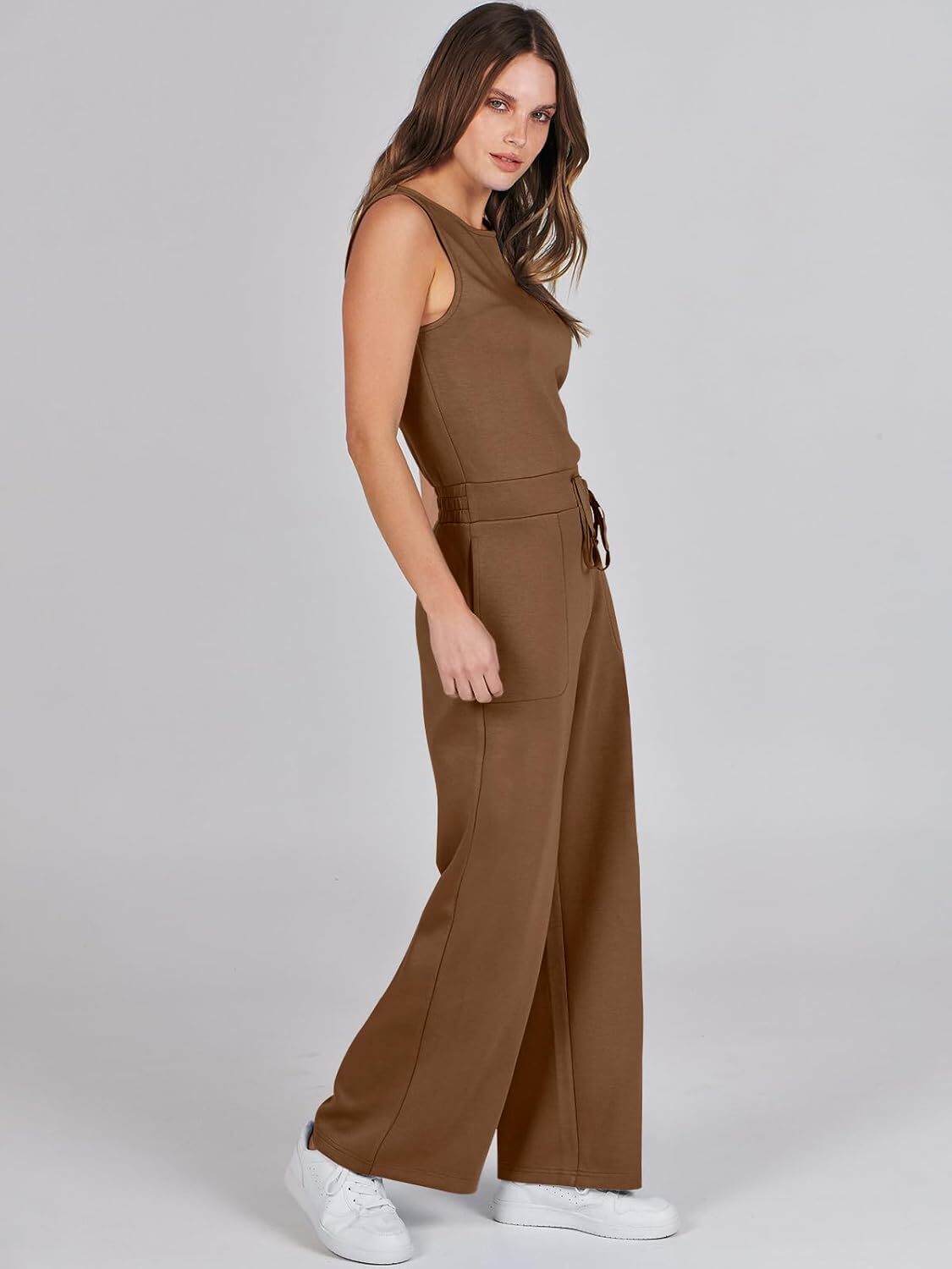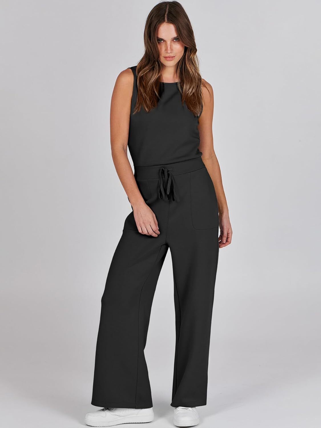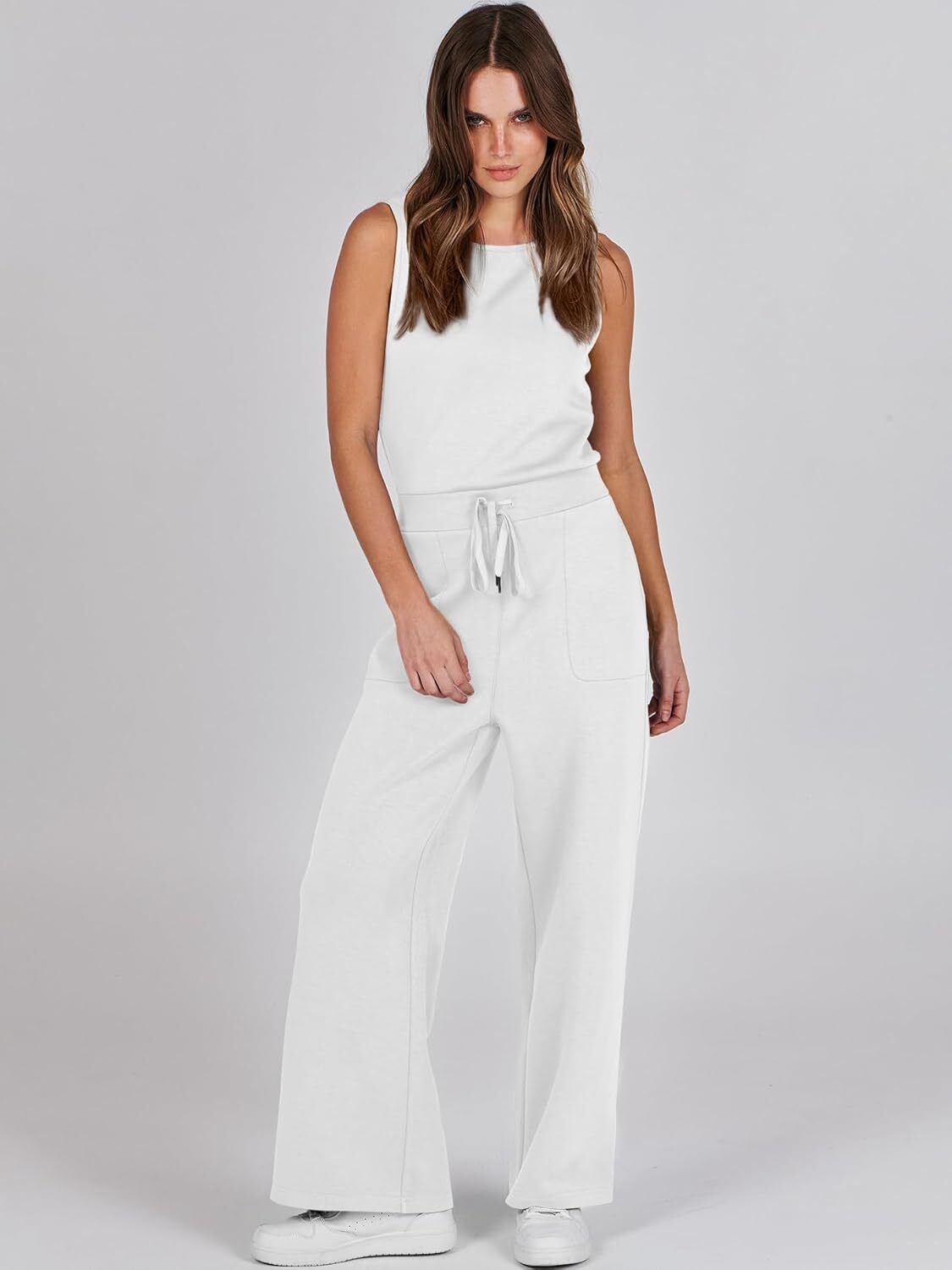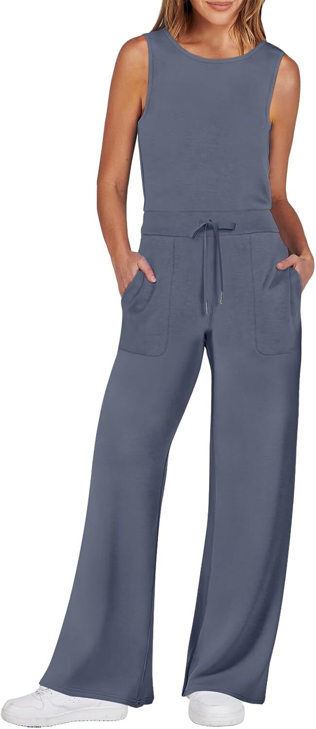 Womens Jumpsuits 2025 Casual Summer Dressy Romper Sleeveless Wide Leg Long Pants Outfits Fashion Travel Clothes