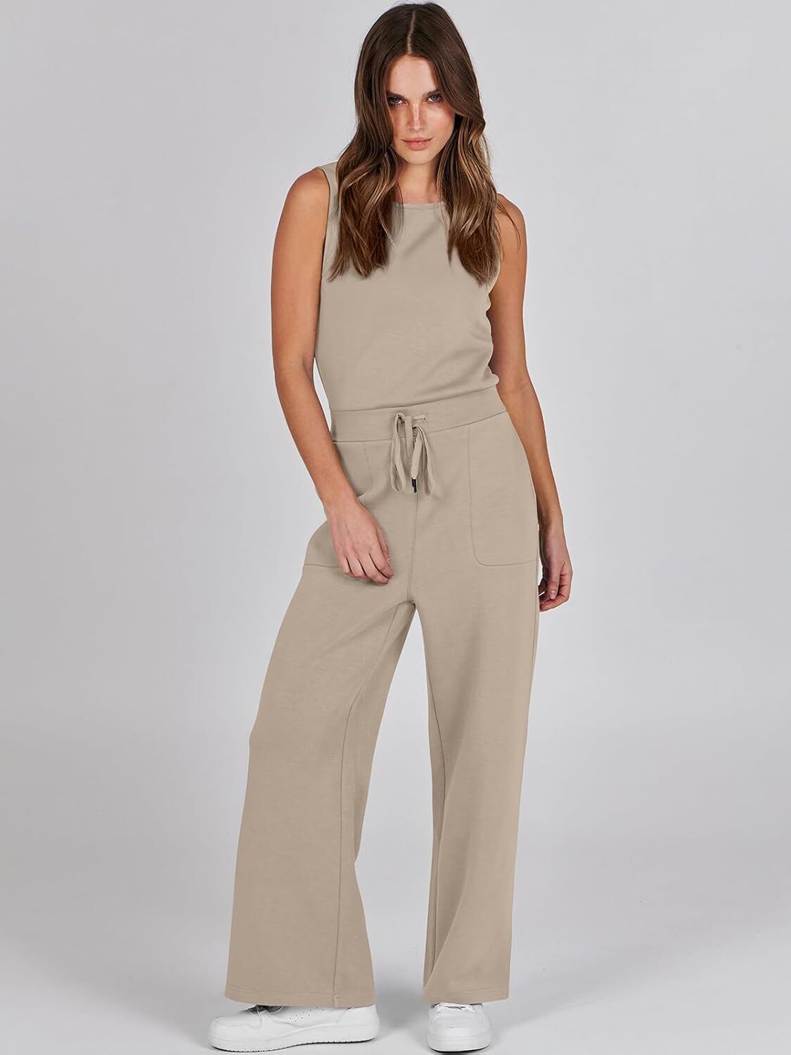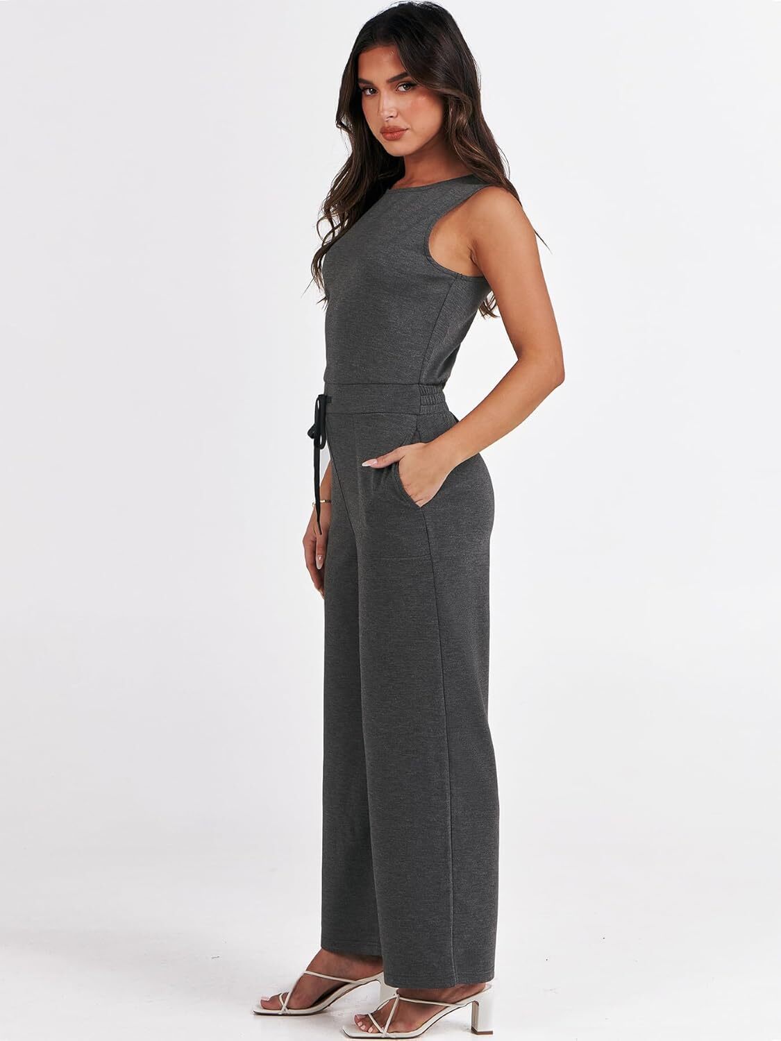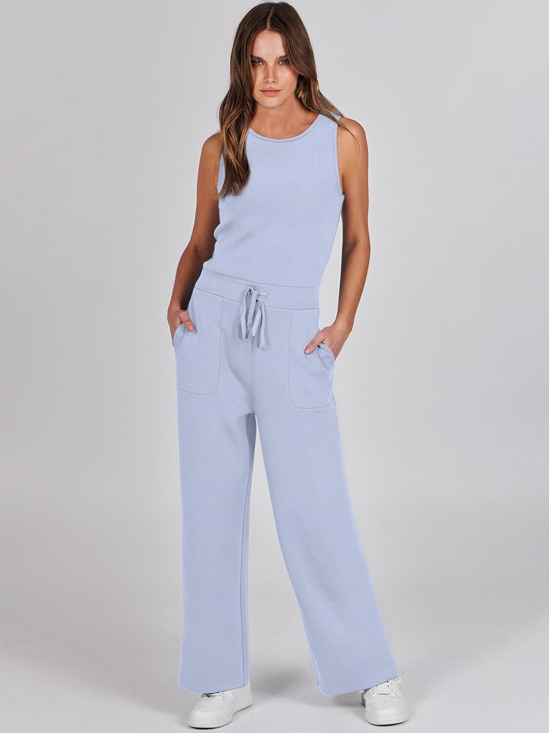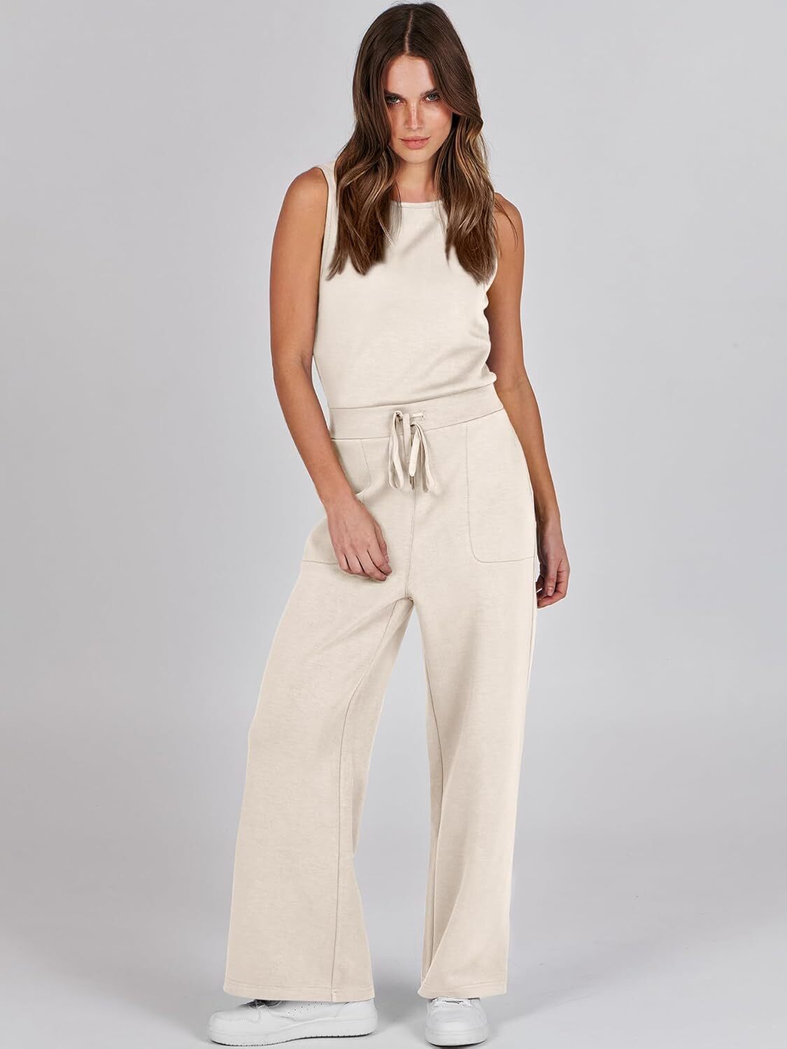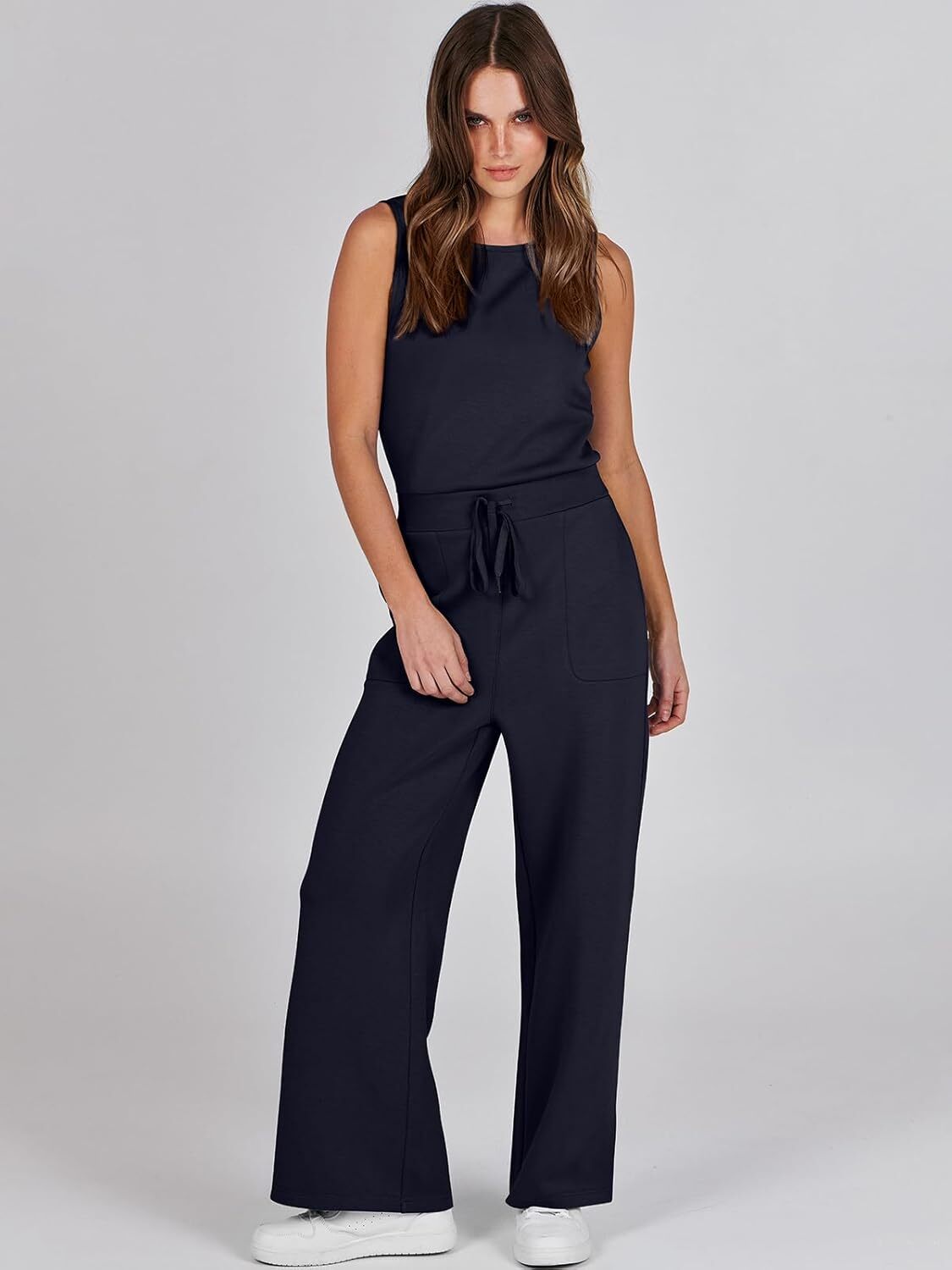 Womens Jumpsuits 2025 Casual Summer Dressy Romper Sleeveless Wide Leg Long Pants Outfits Fashion Travel Clothes