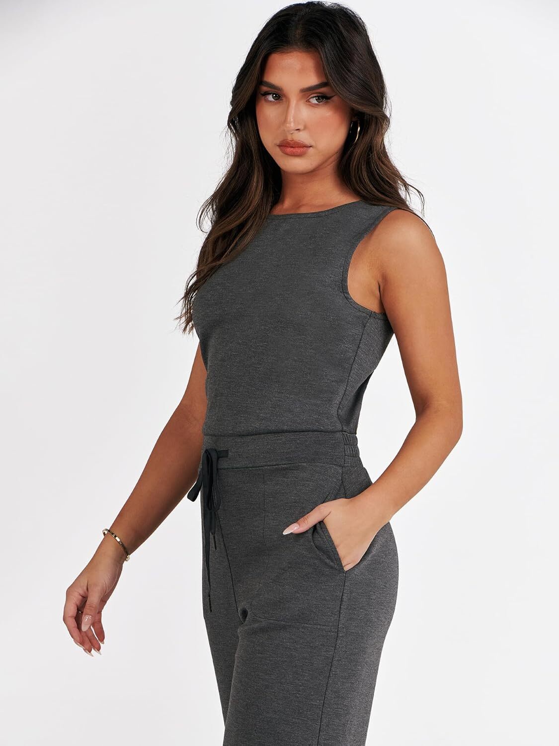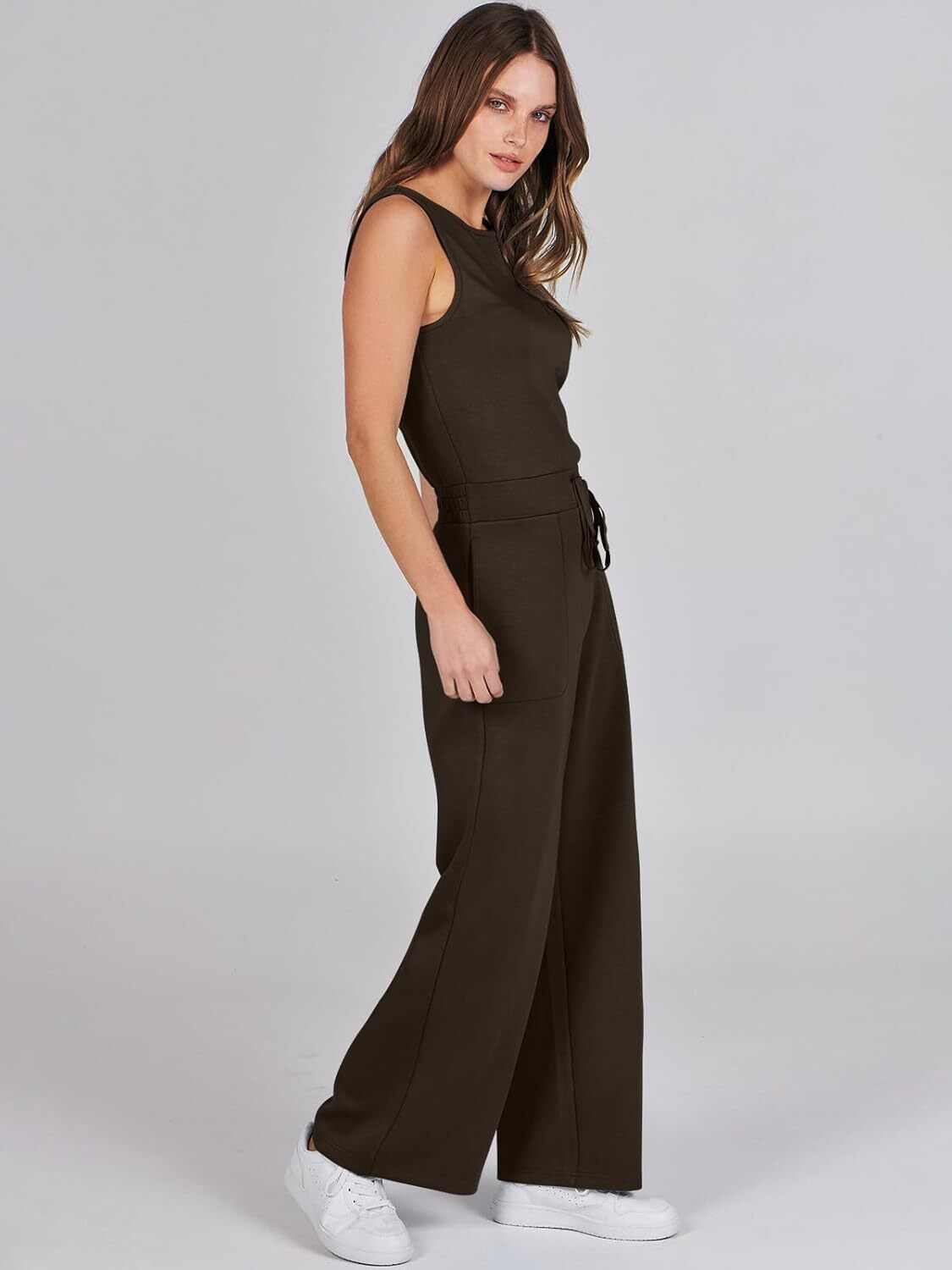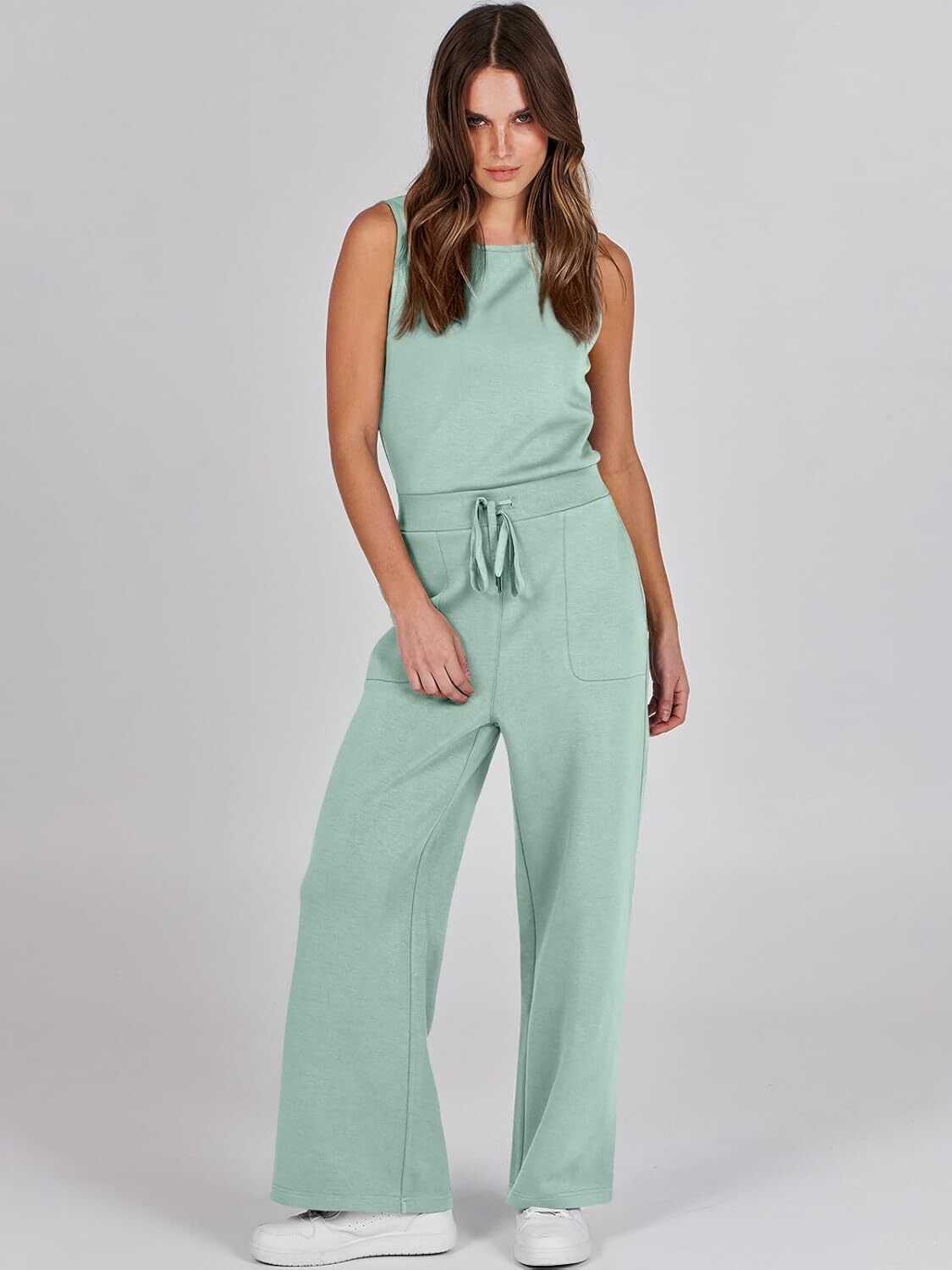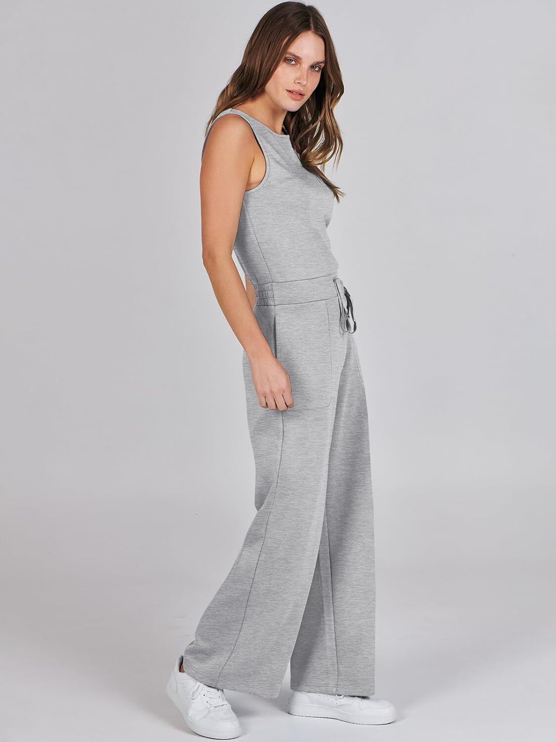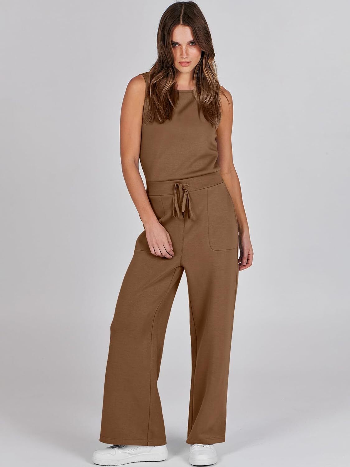 Womens Jumpsuits 2025 Casual Summer Dressy Romper Sleeveless Wide Leg Long Pants Outfits Fashion Travel Clothes