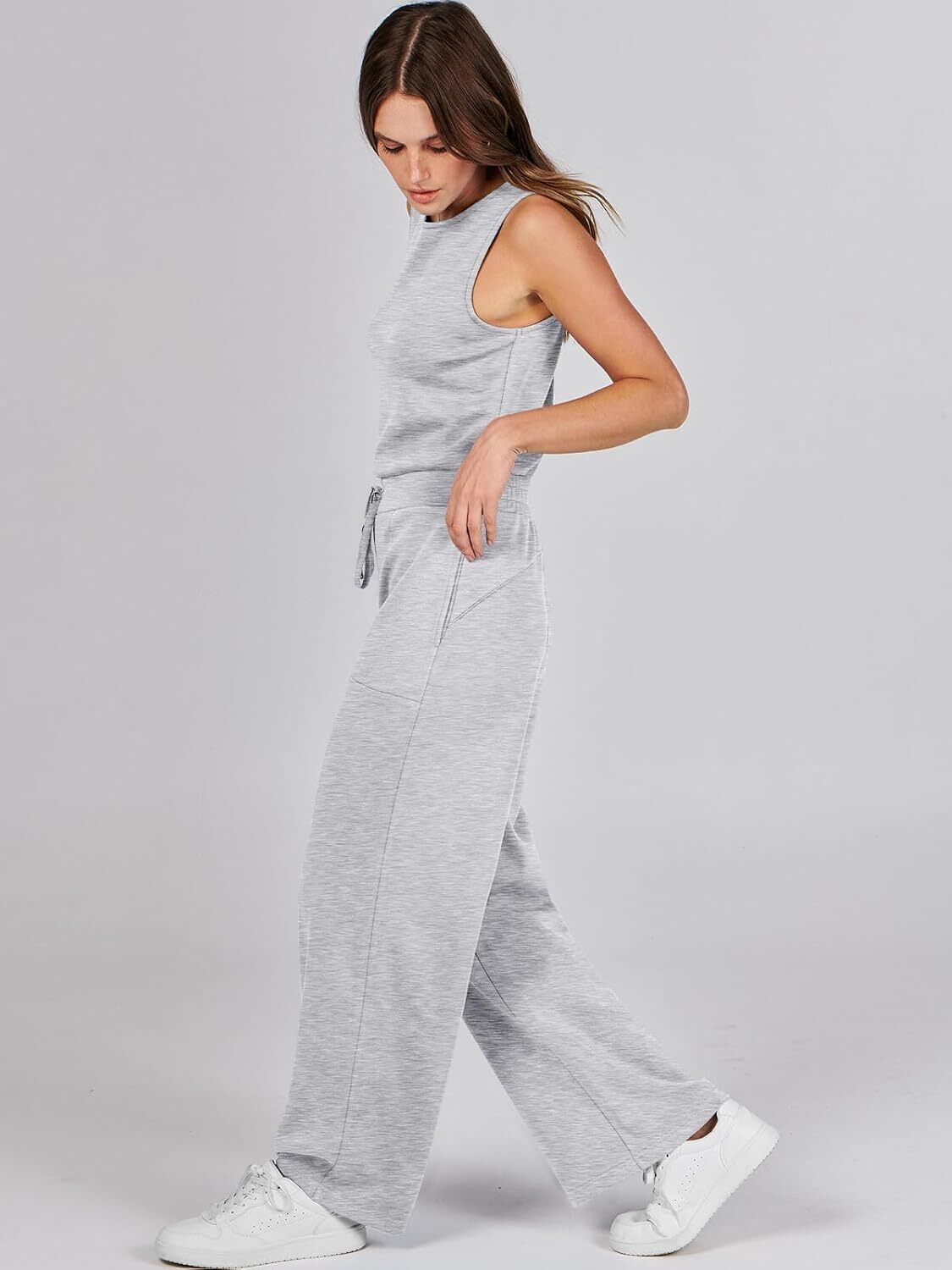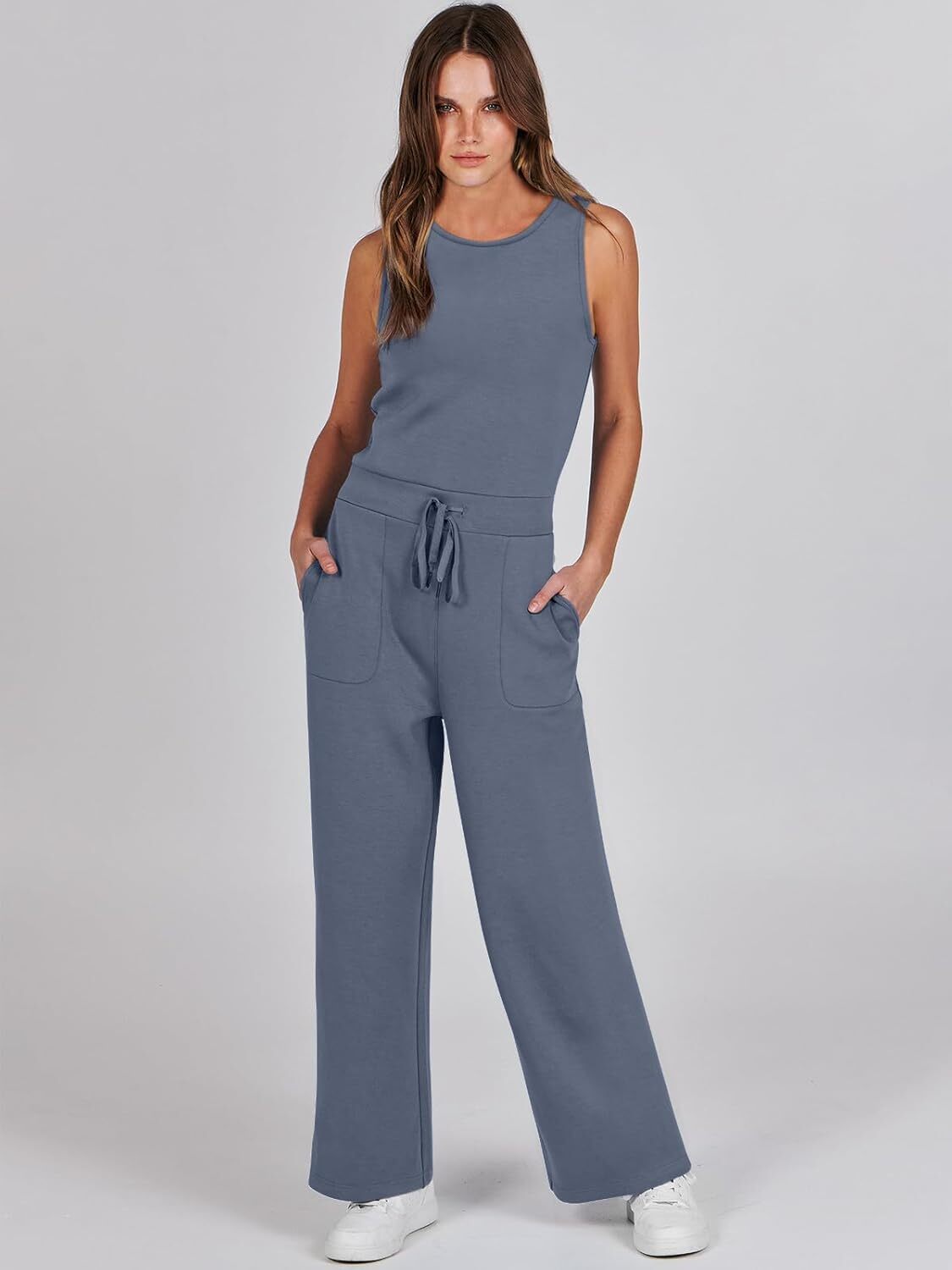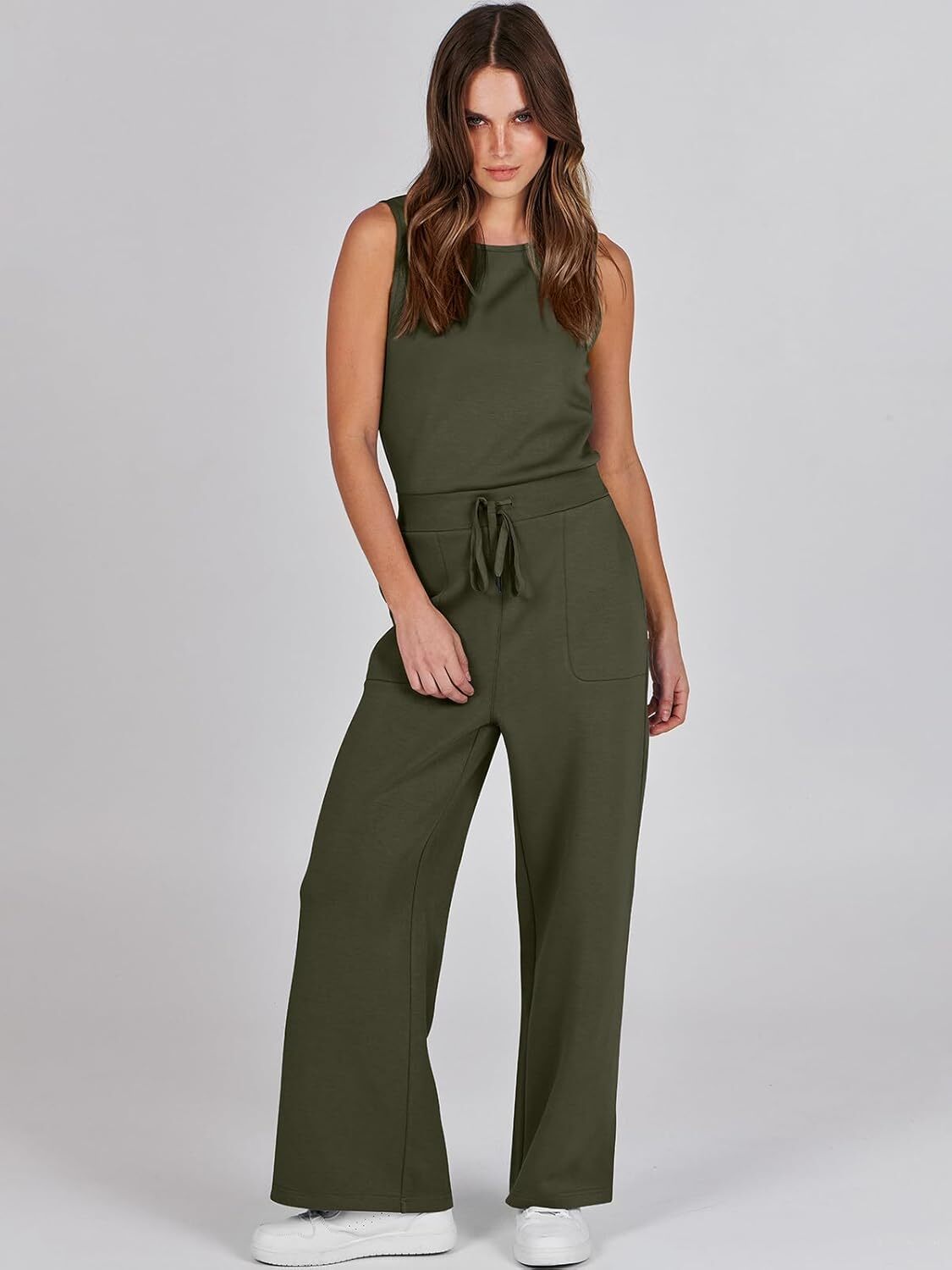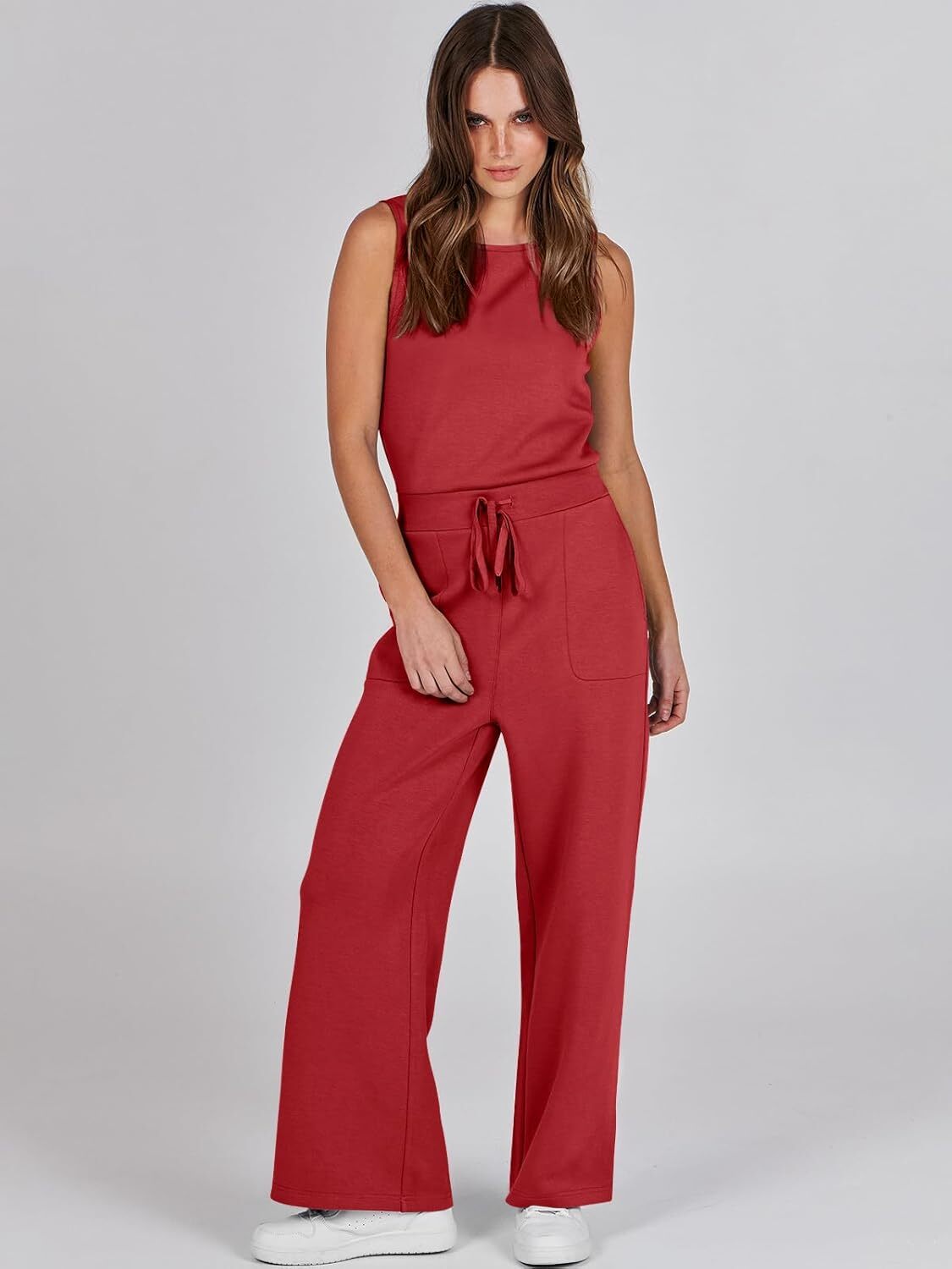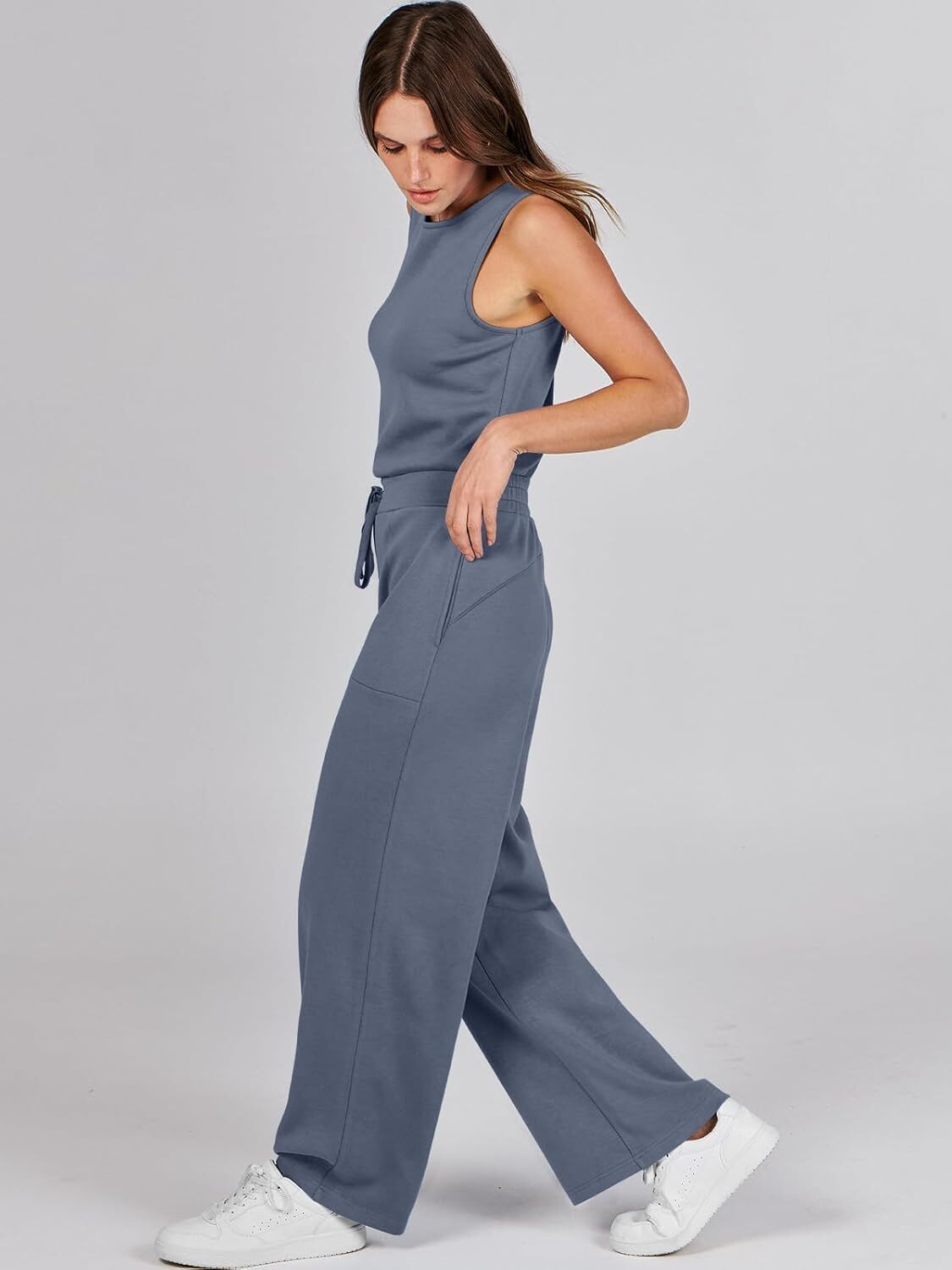 Womens Jumpsuits 2025 Casual Summer Dressy Romper Sleeveless Wide Leg Long Pants Outfits Fashion Travel Clothes