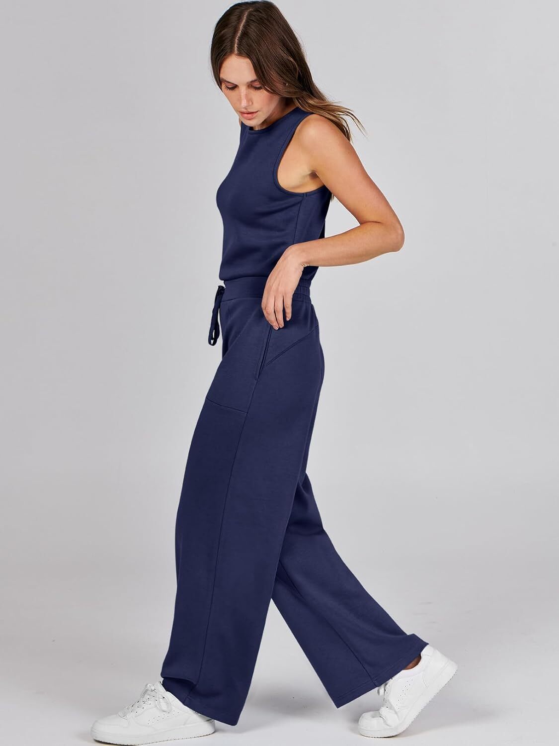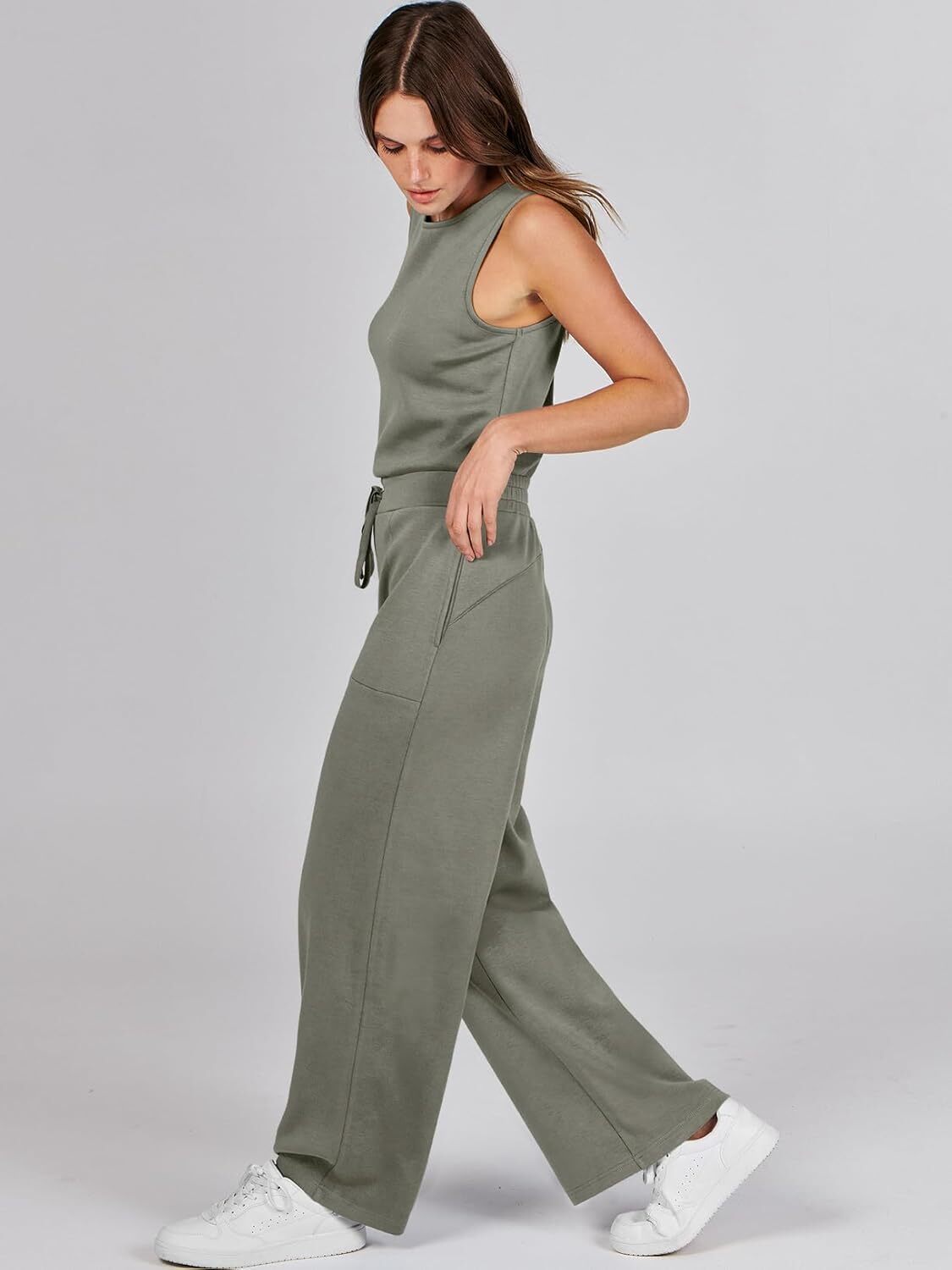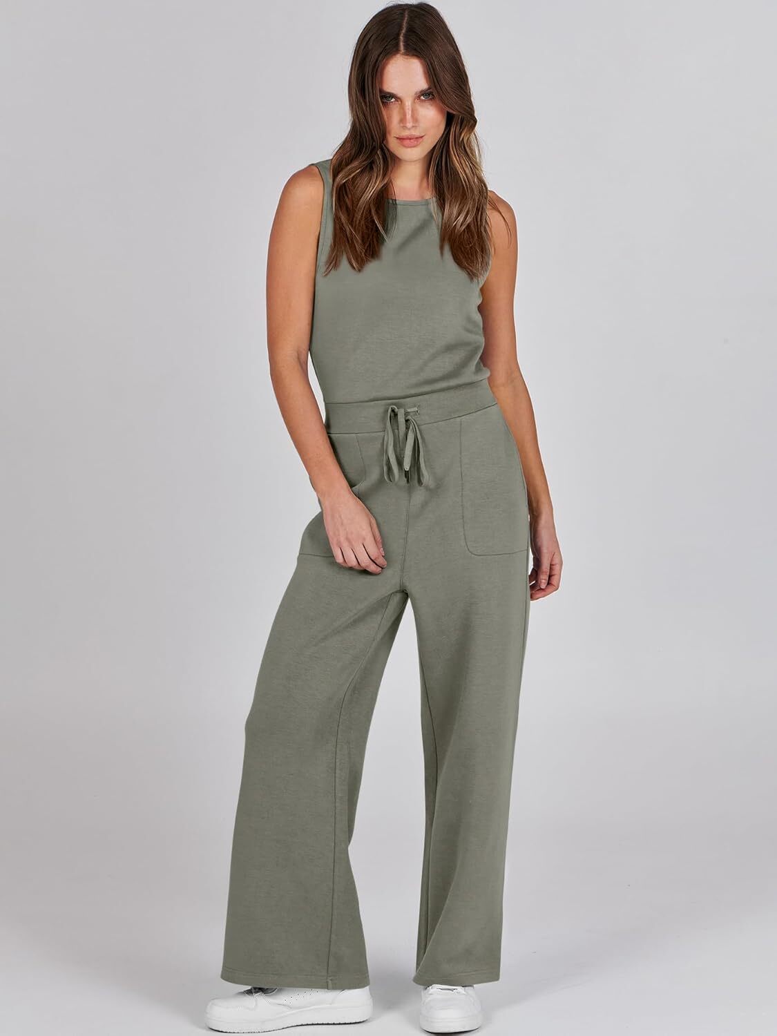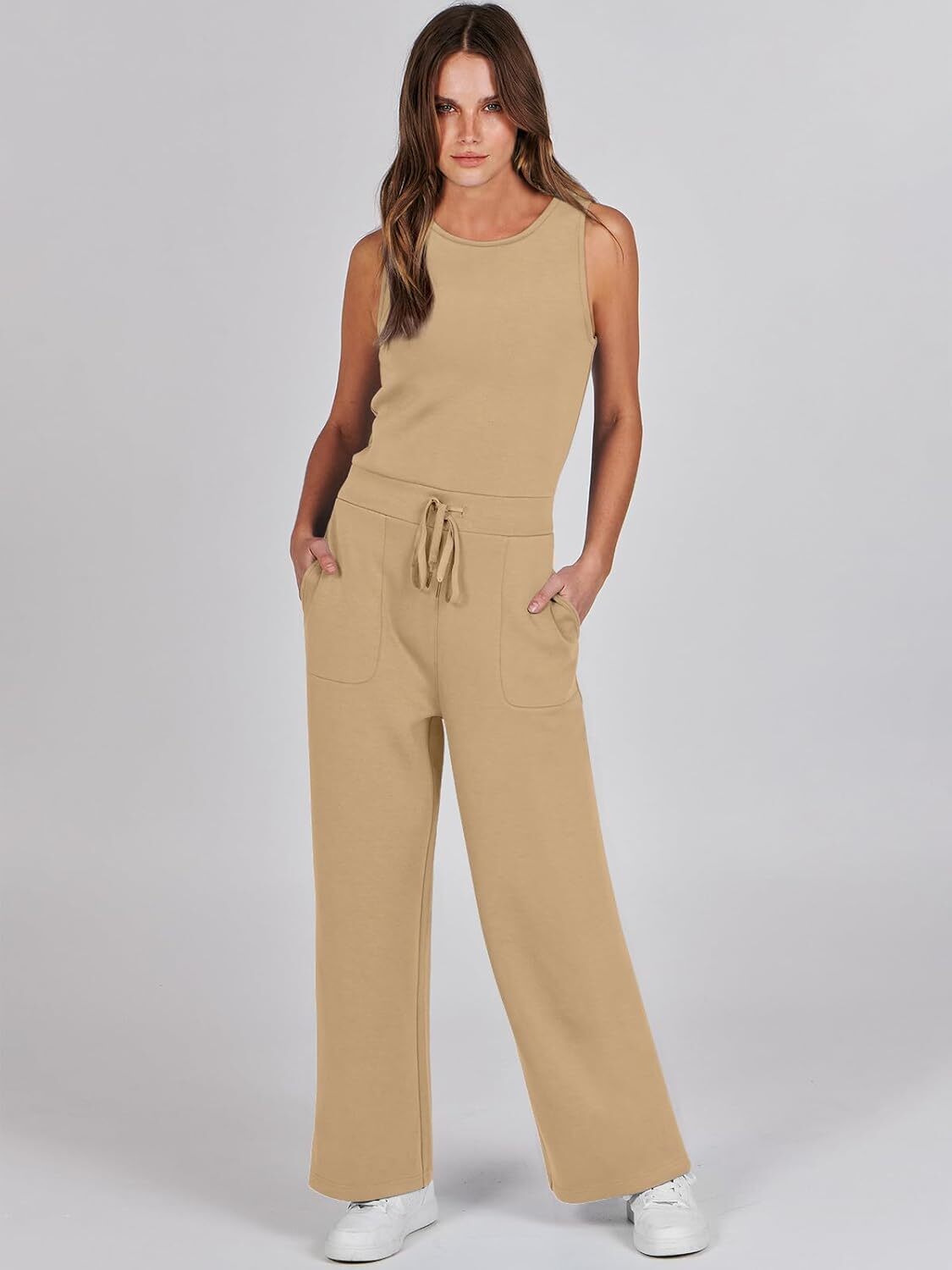 Womens Jumpsuits 2025 Casual Summer Dressy Romper Sleeveless Wide Leg Long Pants Outfits Fashion Travel Clothes