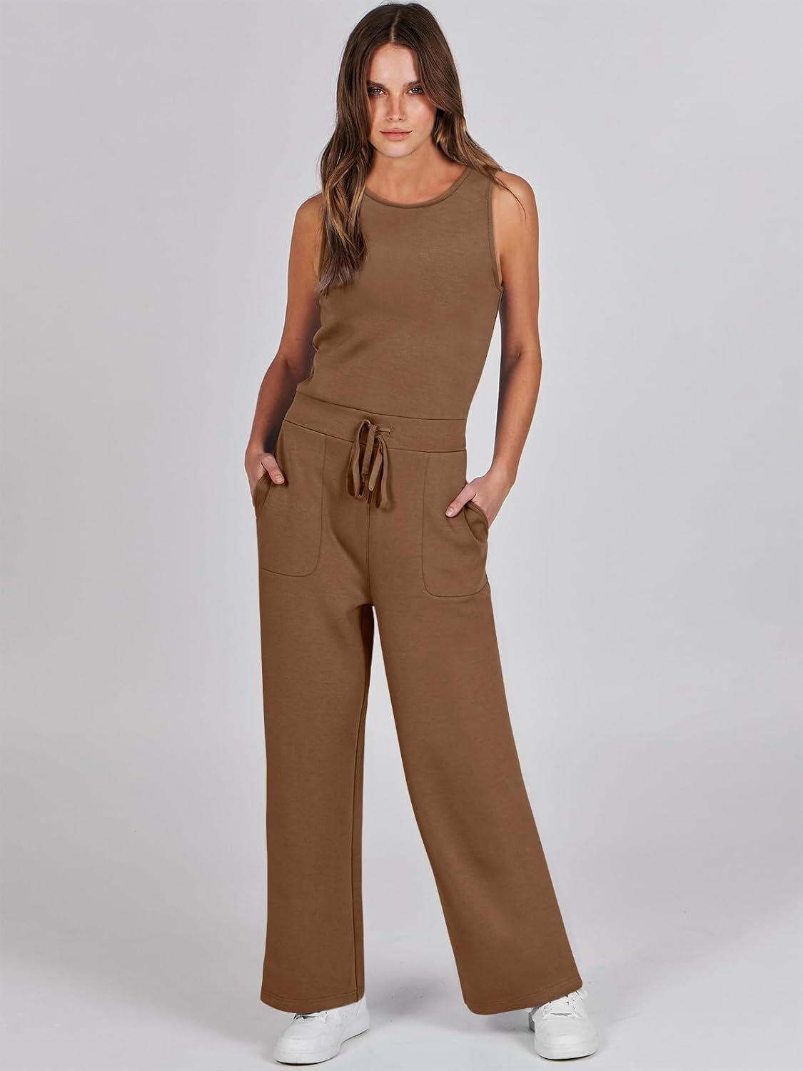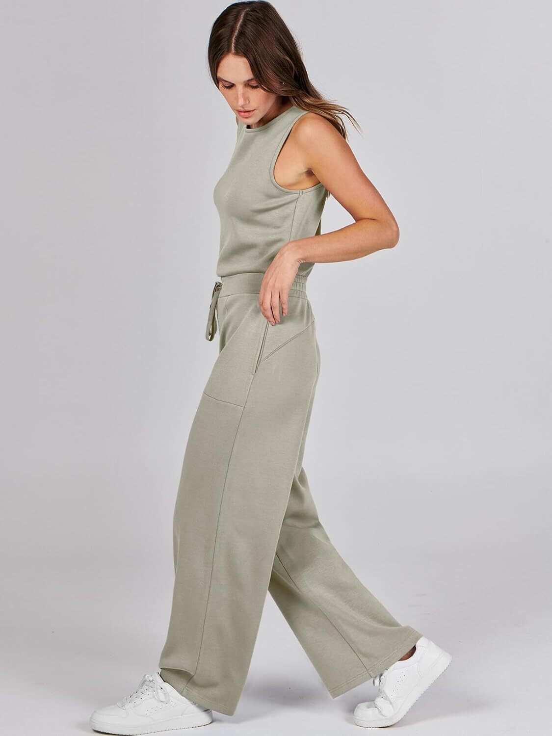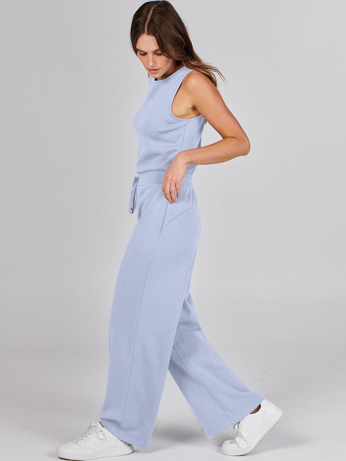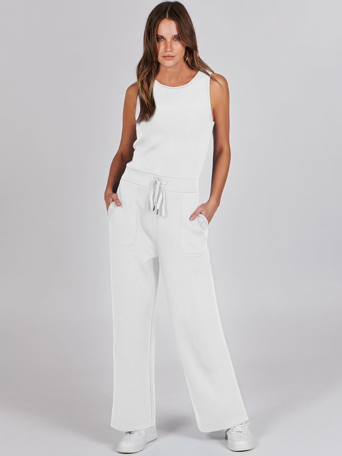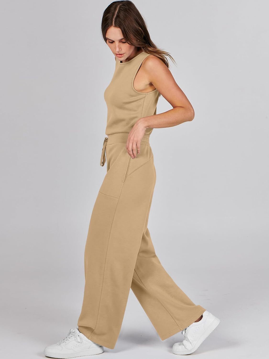 Womens Jumpsuits 2025 Casual Summer Dressy Romper Sleeveless Wide Leg Long Pants Outfits Fashion Travel Clothes