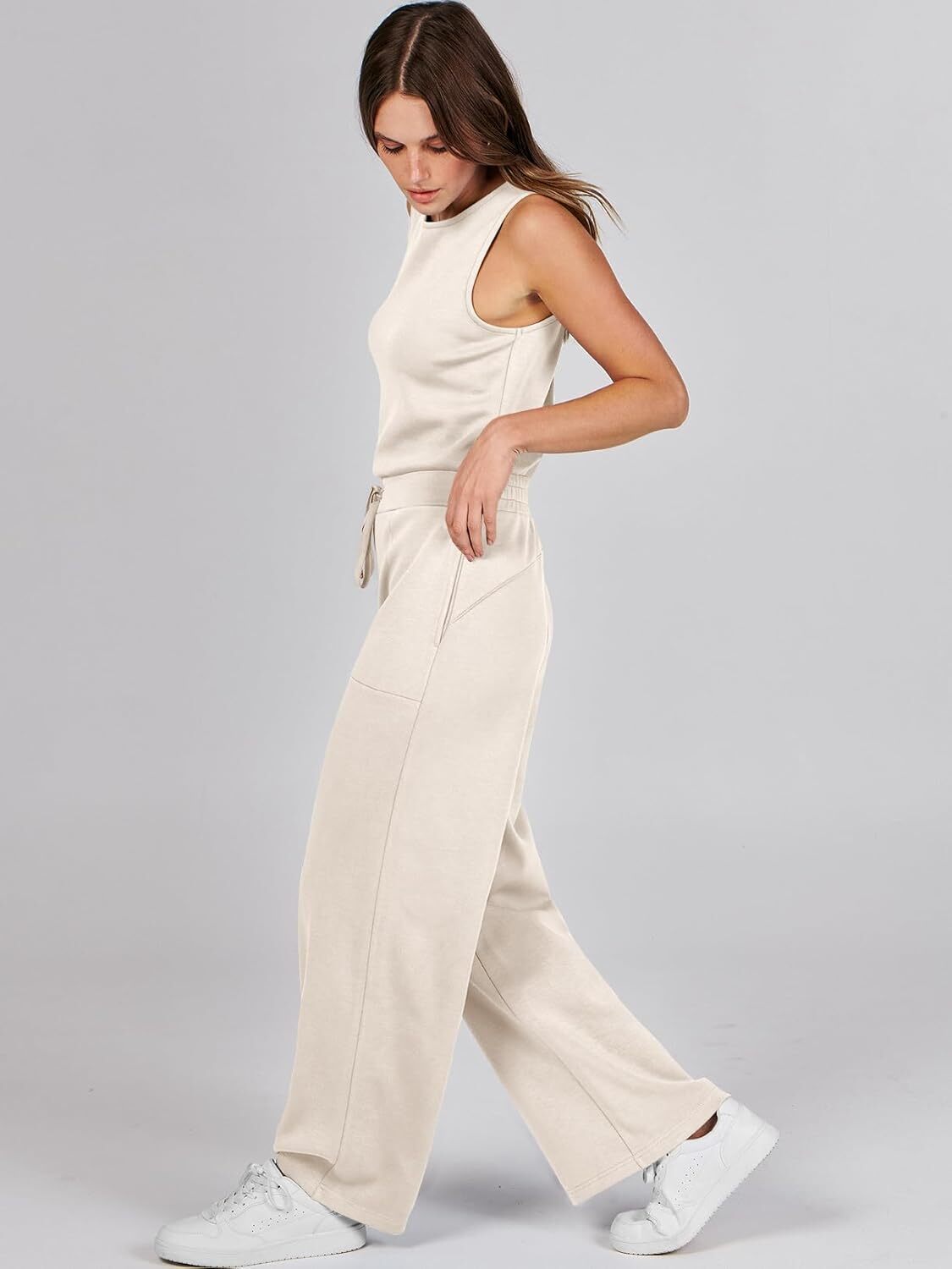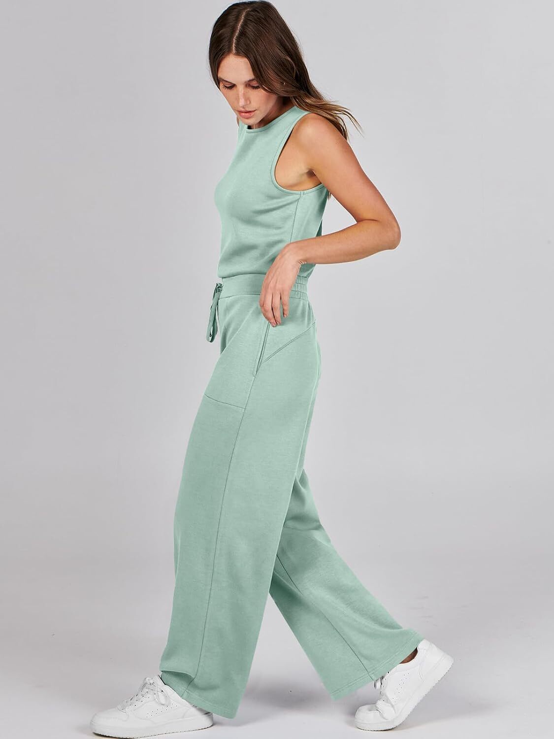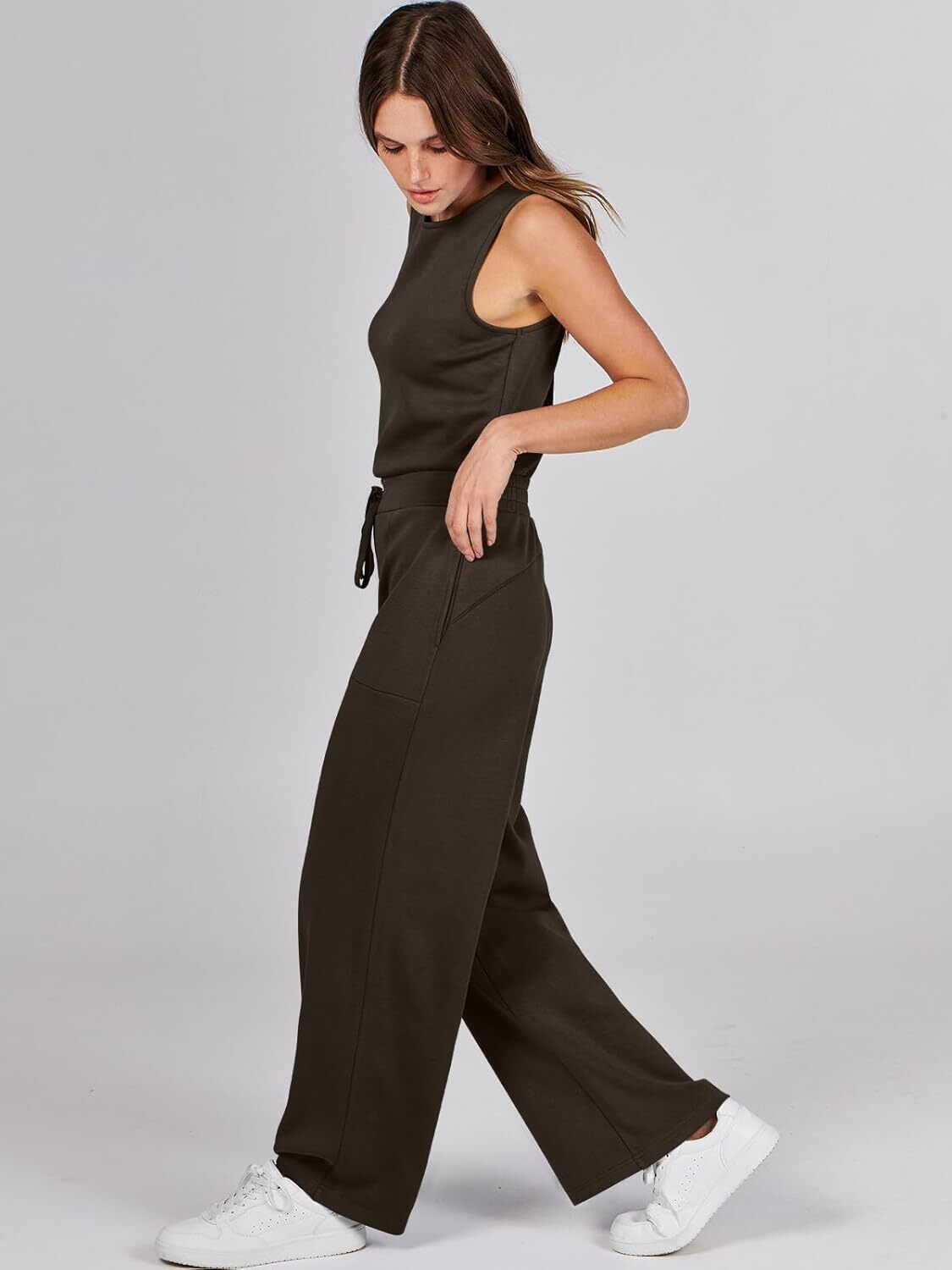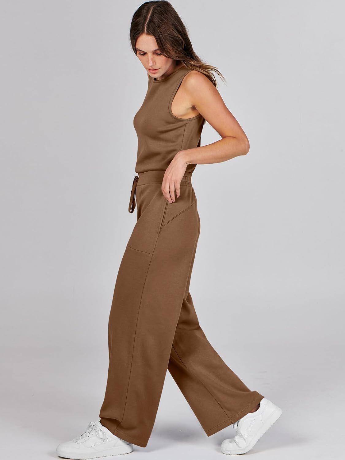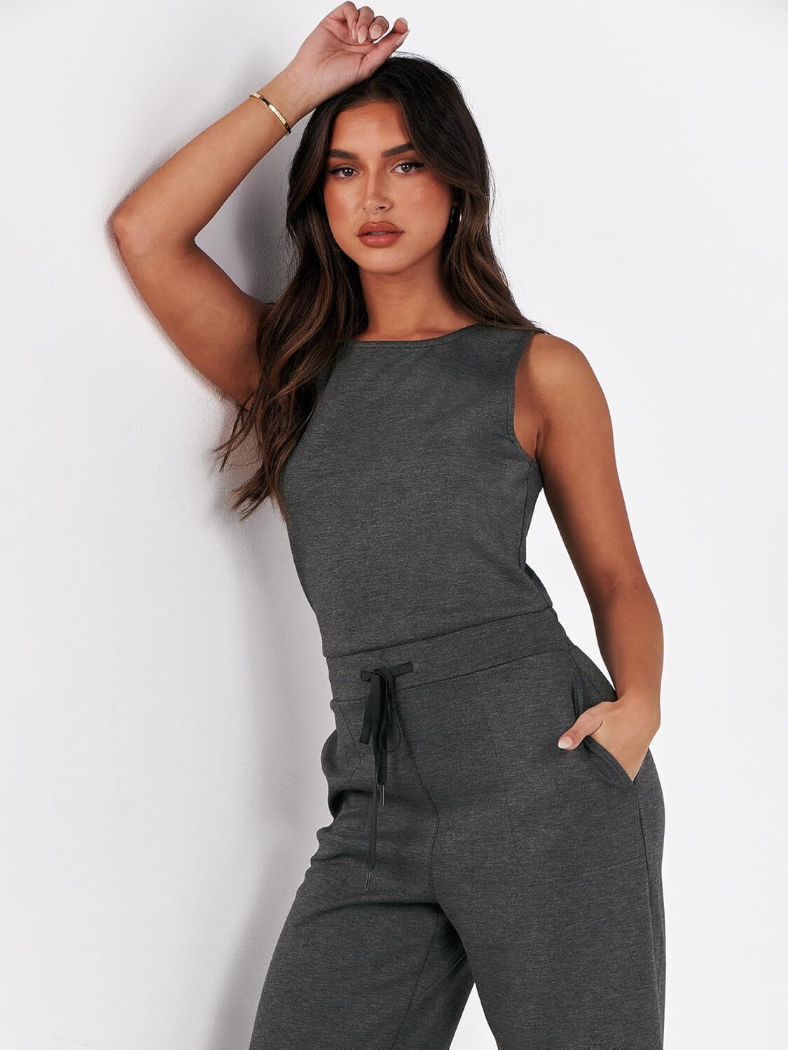 Womens Jumpsuits 2025 Casual Summer Dressy Romper Sleeveless Wide Leg Long Pants Outfits Fashion Travel Clothes